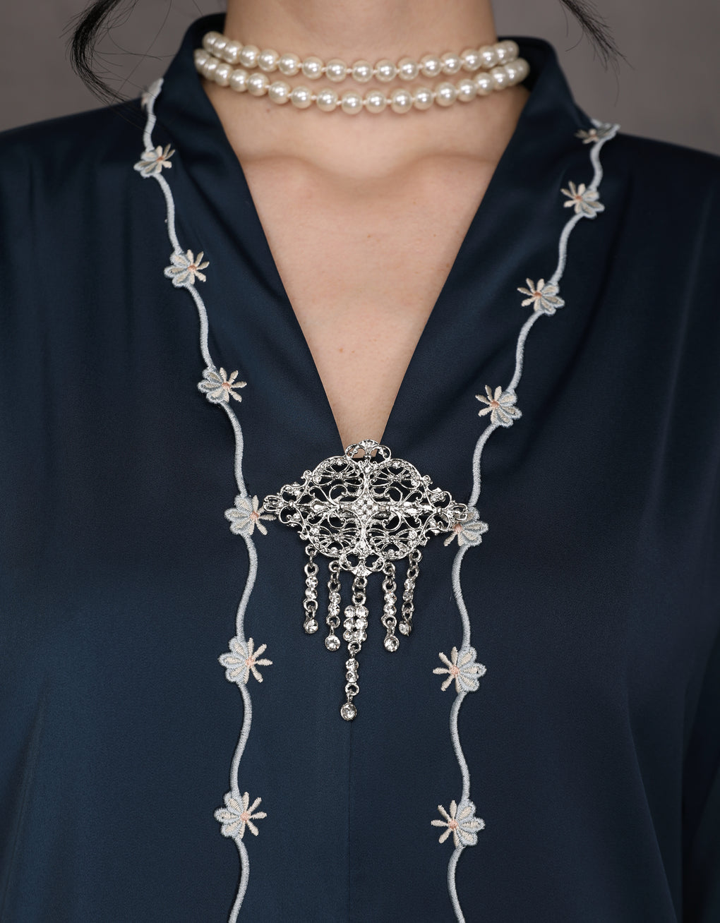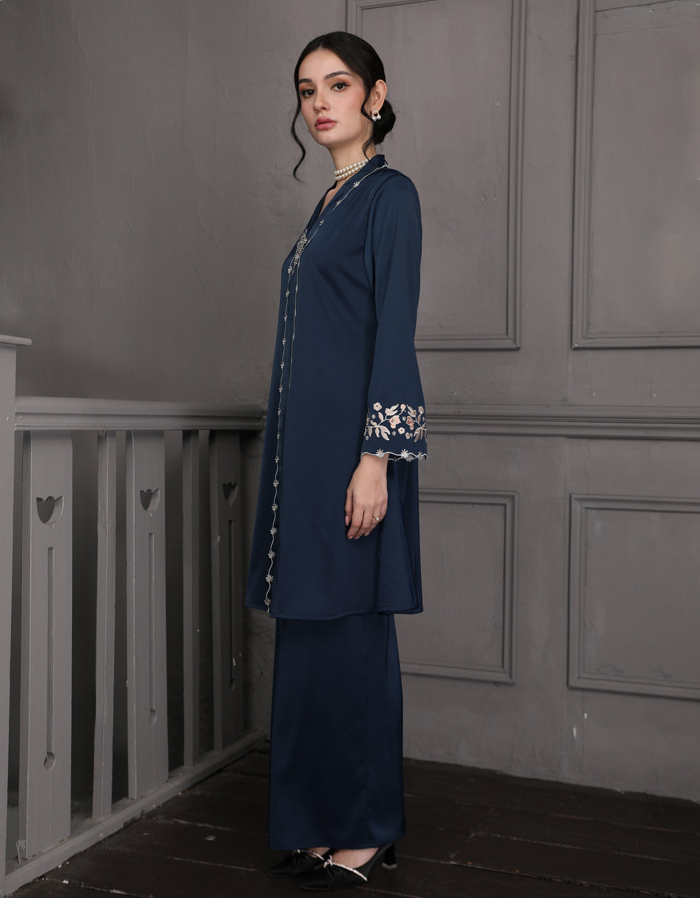 The 'Baju Kebaya Moden Winona' is crafted from Italian Silky Satin with a detailed Embroidered on the sleeves. Elegant and refined—perfect for festive or formal occasions.