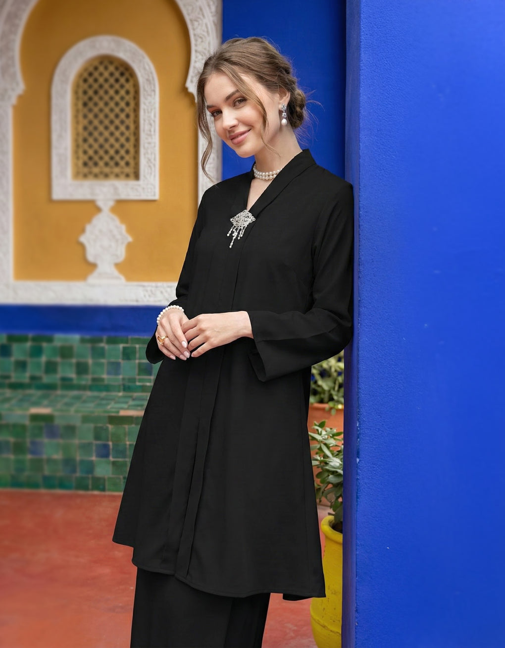 ✿ Modest V-neckline design