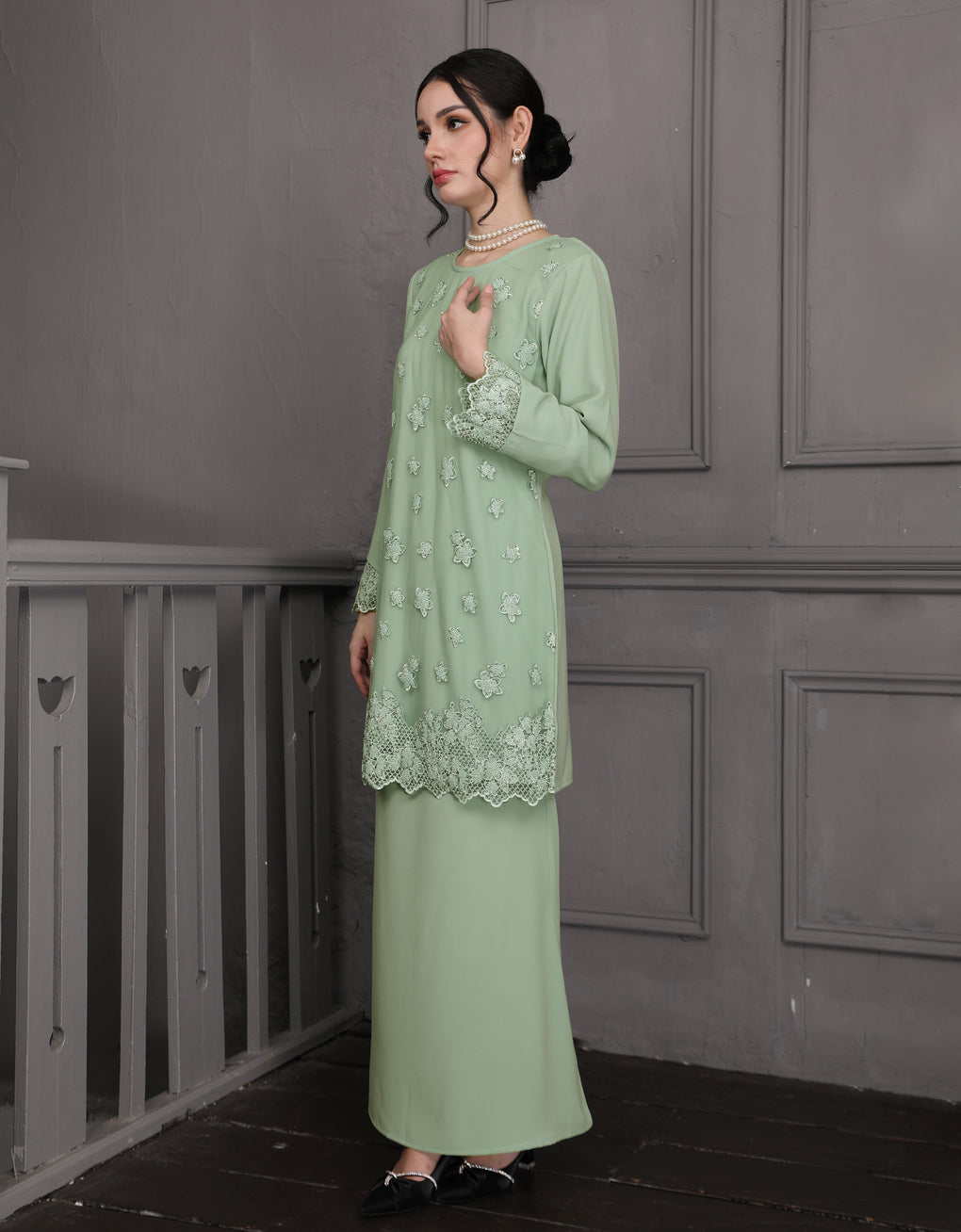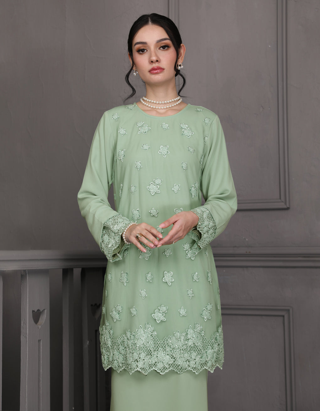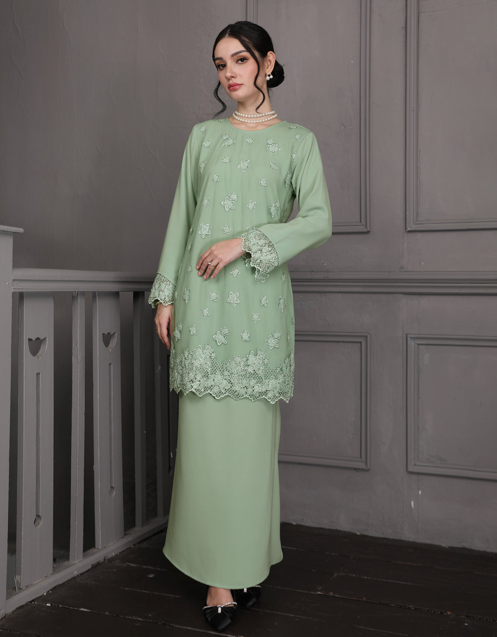 BAJU KURUNG MODEN ALUNA (MINT GREEN)