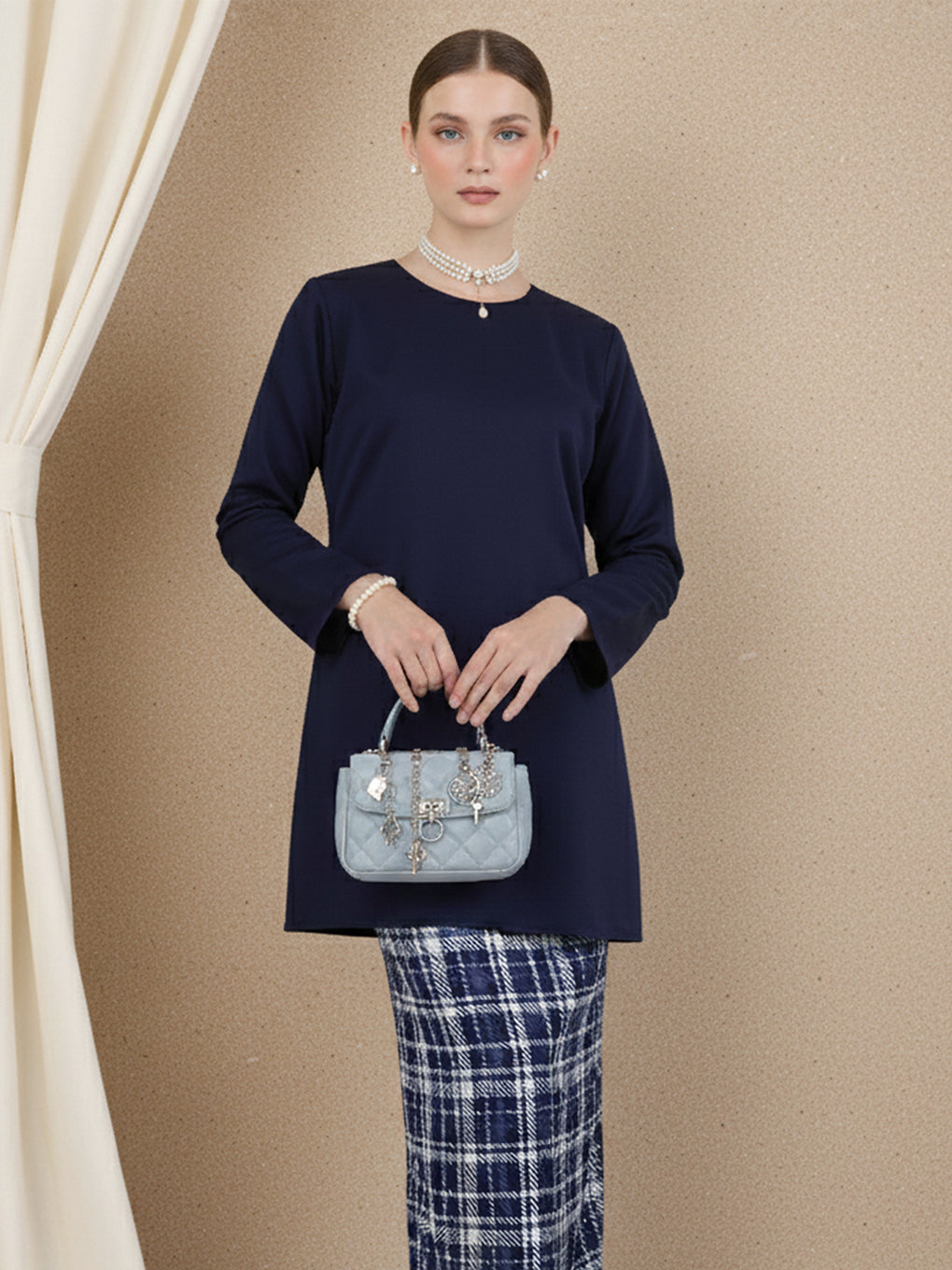 BAJU KURUNG MODEN KARINA (NAVY BLUE)