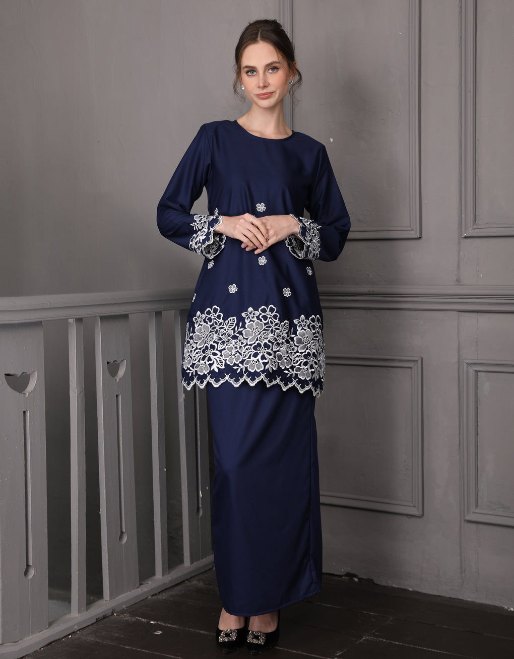 BAJU KURUNG PAHANG MODEN ALTHEA (NAVY BLUE)