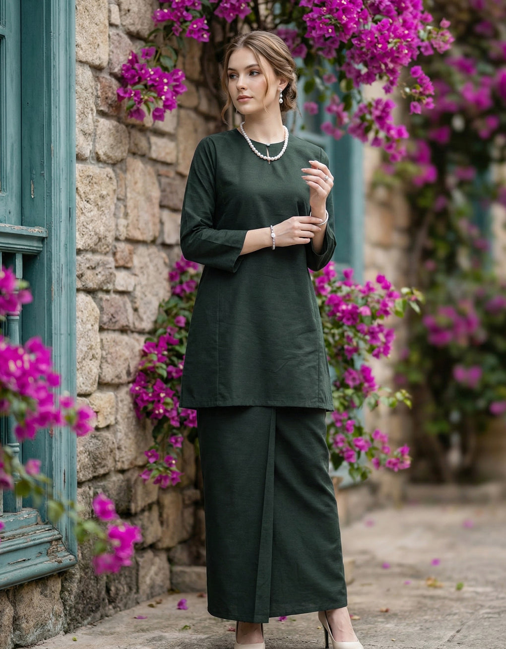BAJU KURUNG PAHANG PESAK ARABELLE (TEAL GREEN)