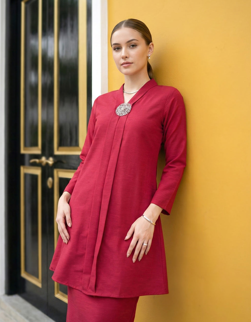 Material: Poly Cotton Linen - textured cotton linen fabric that feels soft and comfortable against the skin. Designed with traditional kebaya cutting, gives an elegant look that are perfect for daily or special occasion.