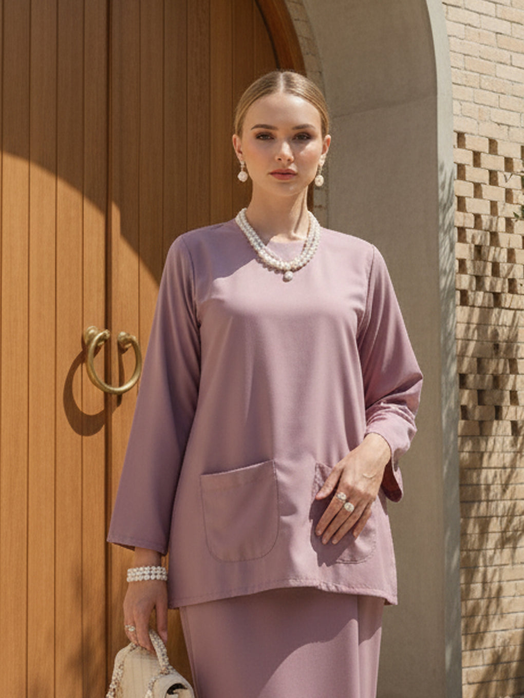 BAJU KURUNG KEDAH DAVIKA (DUSTY PLUM)