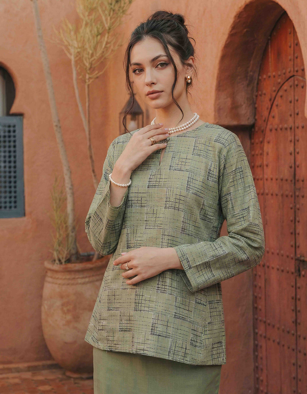 Baju Kurung Kedah Pesak Kendra Elevate your traditional wardrobe with this authentic Baju Kurung Kedah crafted from premium cotton check fabric. The classic Pesak Kendra design features the distinctive Kedah silhouette, renowned for its refined proportions and timeless elegance. Offers versatility for both everyday wear and special occasions, while the breathable cotton construction ensures comfort in Malaysia's tropical climate. Perfect for those who appreciate quality craftsmanship and cultural heritage in their everyday style.