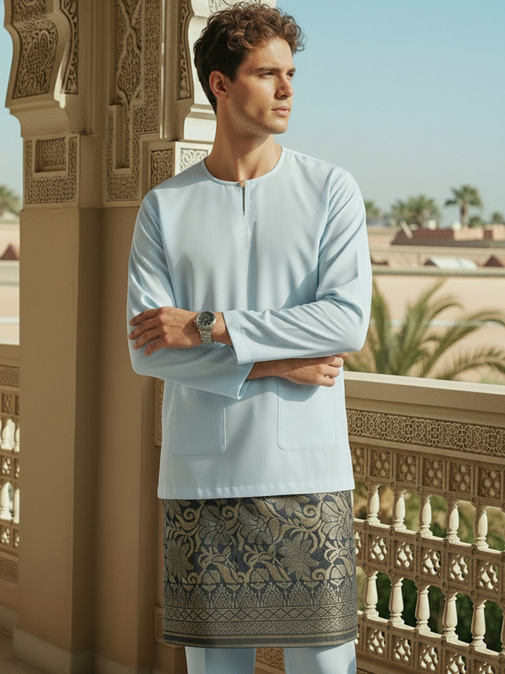 BAJU MELAYU PESAK MEGAT R/FIT (BABY BLUE)