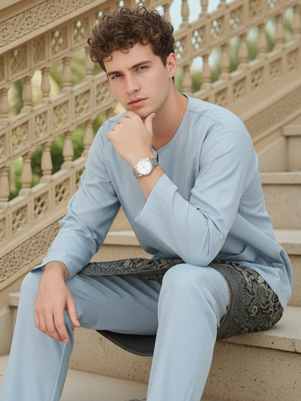 BAJU MELAYU PESAK MEGAT R/FIT (POWDER BLUE)