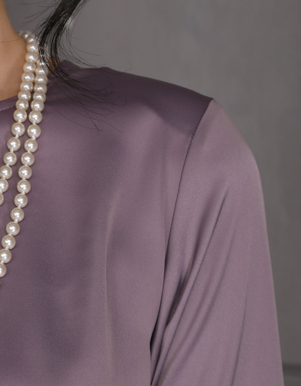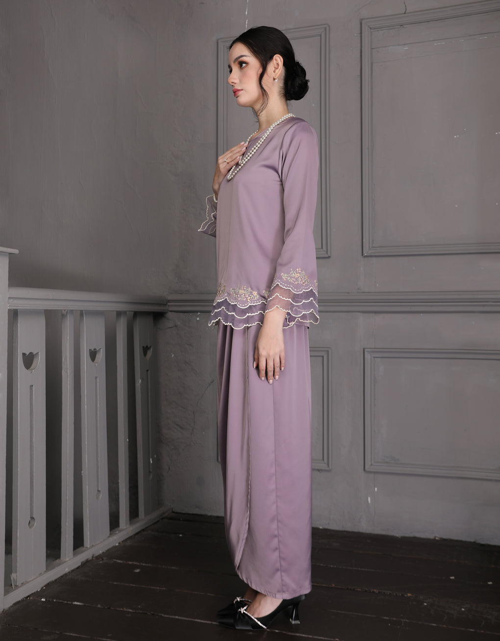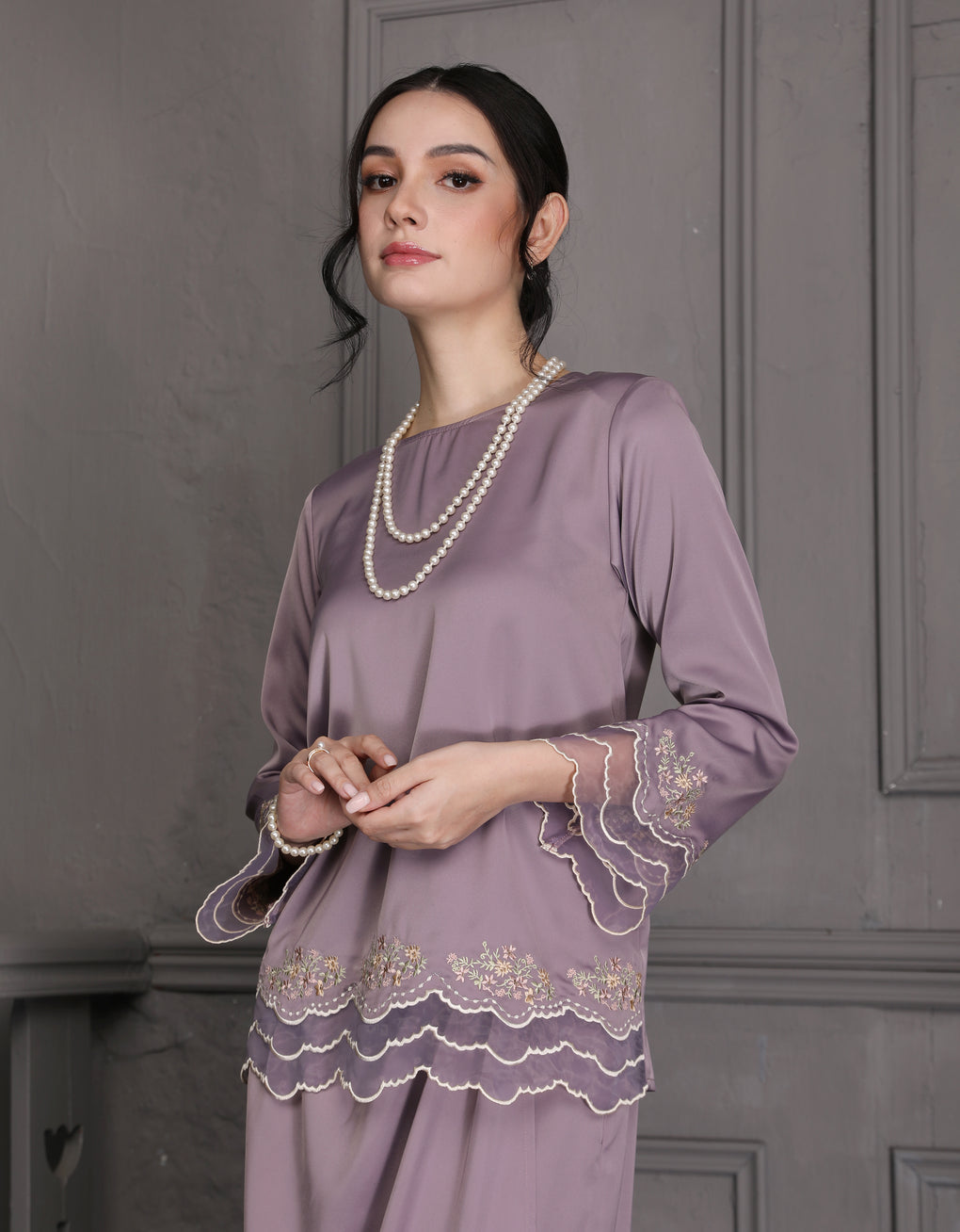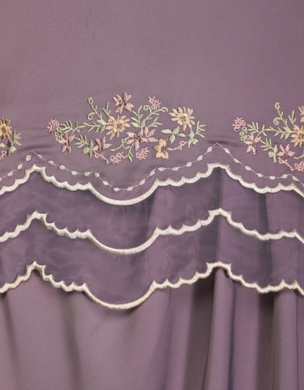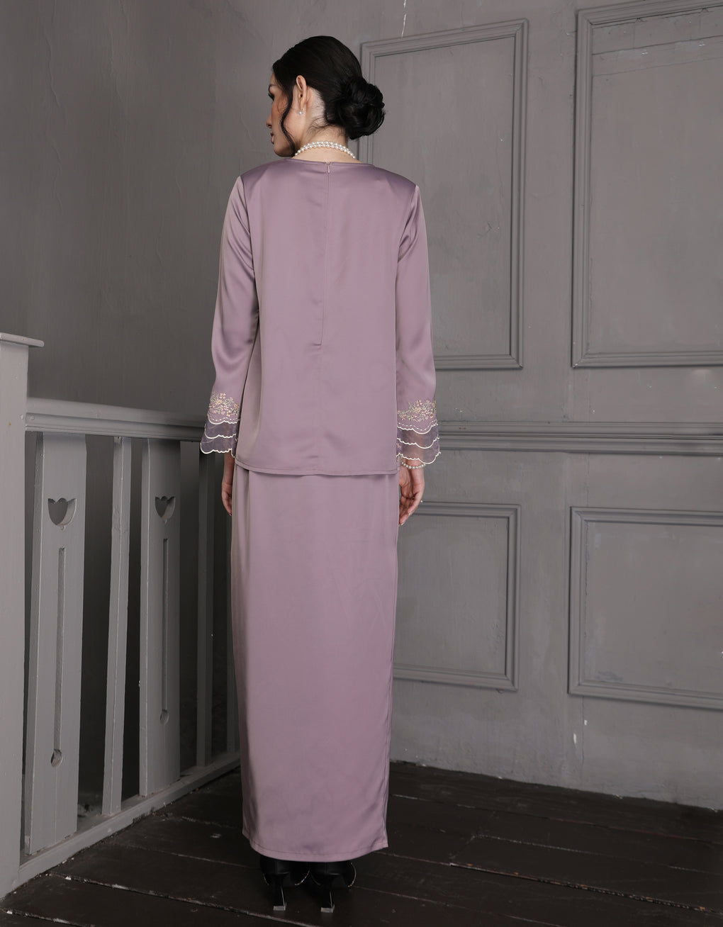 'Baju Kurung Moden Harriet’ combines classic charm with modern elegance. Made from silky Italian satin and detailed with fine multicolor embroidery on the sleeves and hem, it looks stunning, luxurious, and feminine — perfect for formal events or graceful daily wear.