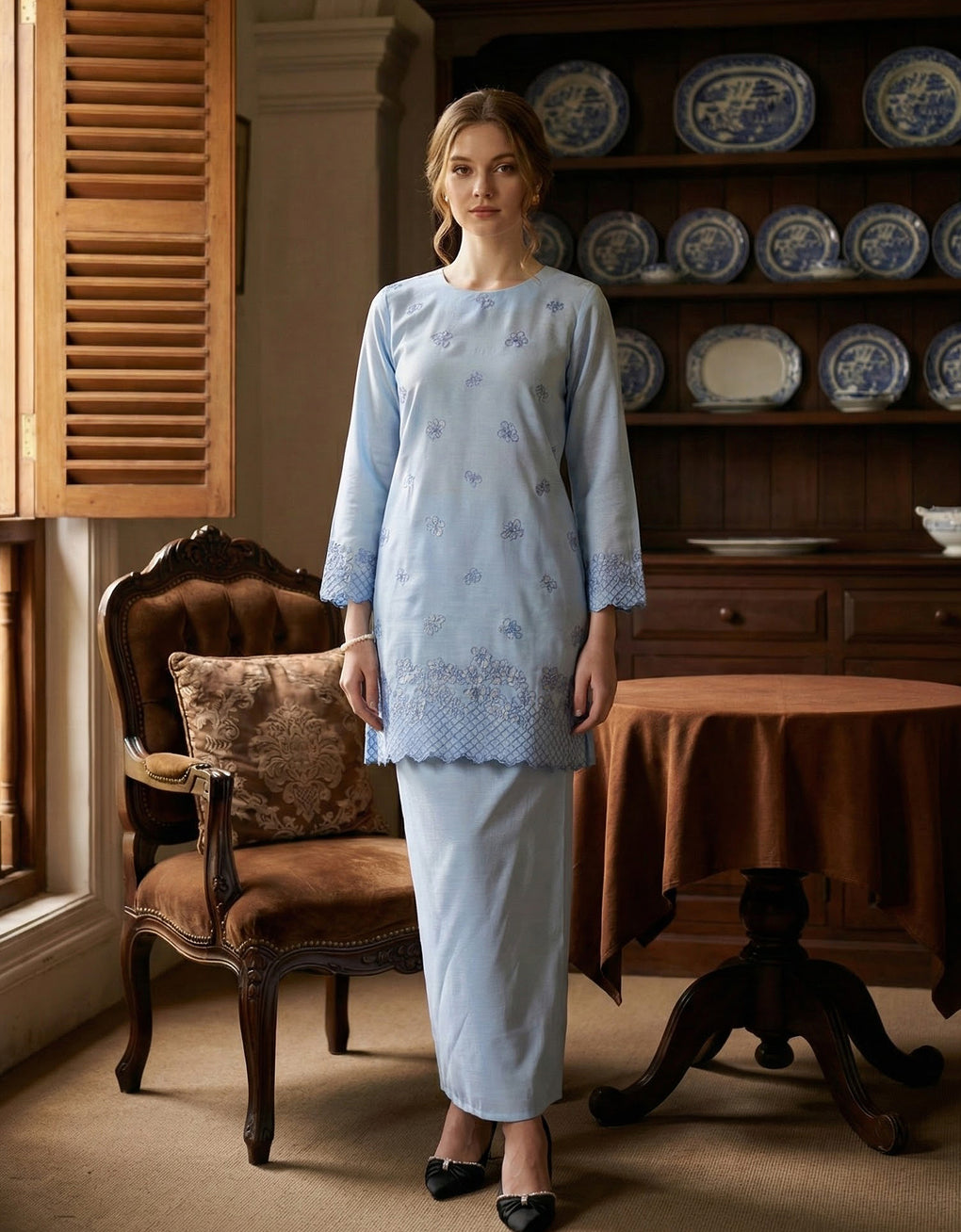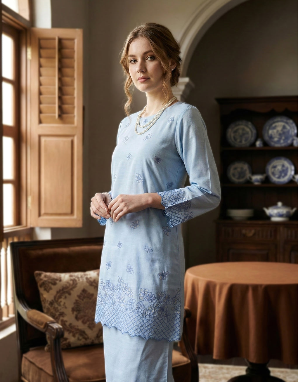 BAJU KURUNG PAHANG MODEN LETTIE (BABY BLUE)