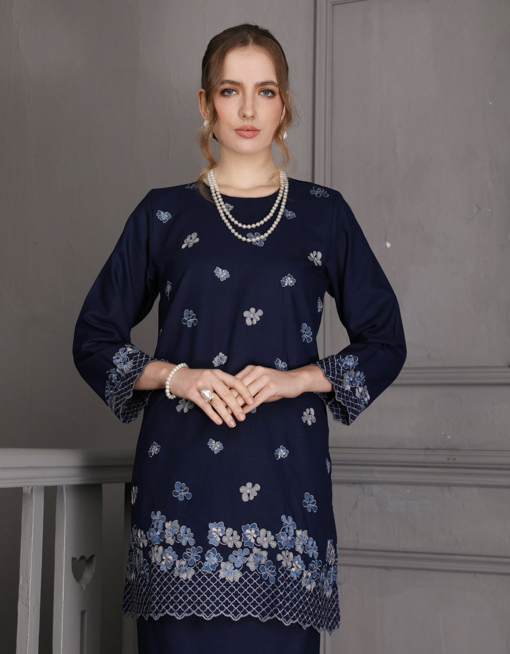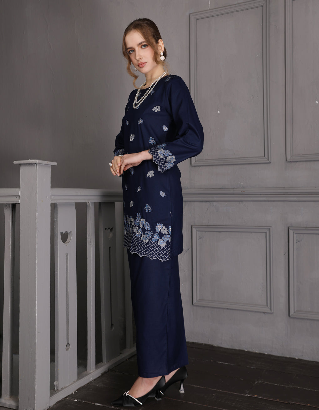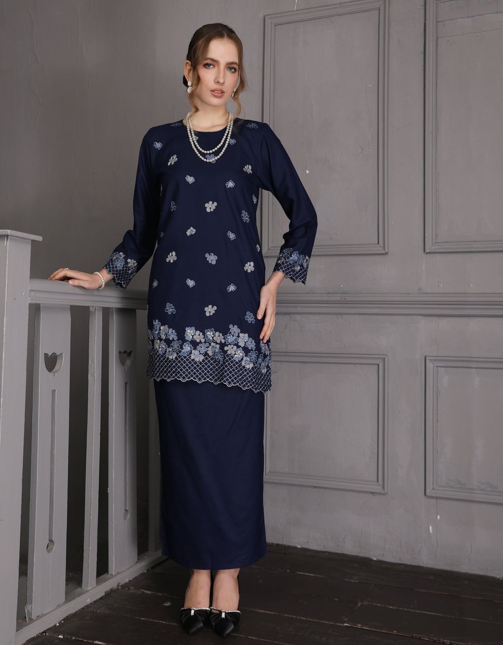 BAJU KURUNG PAHANG MODEN LETTIE (NAVY BLUE)