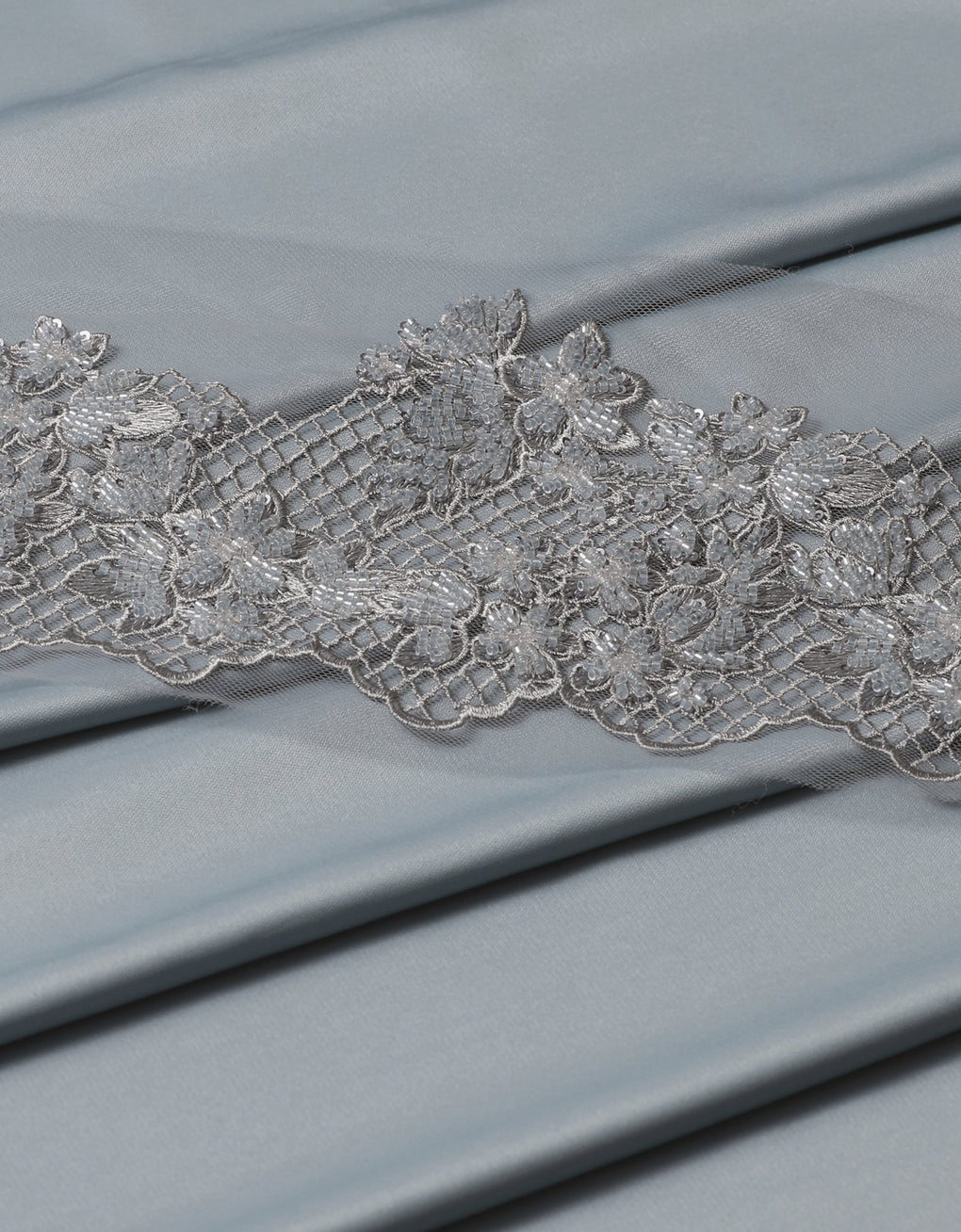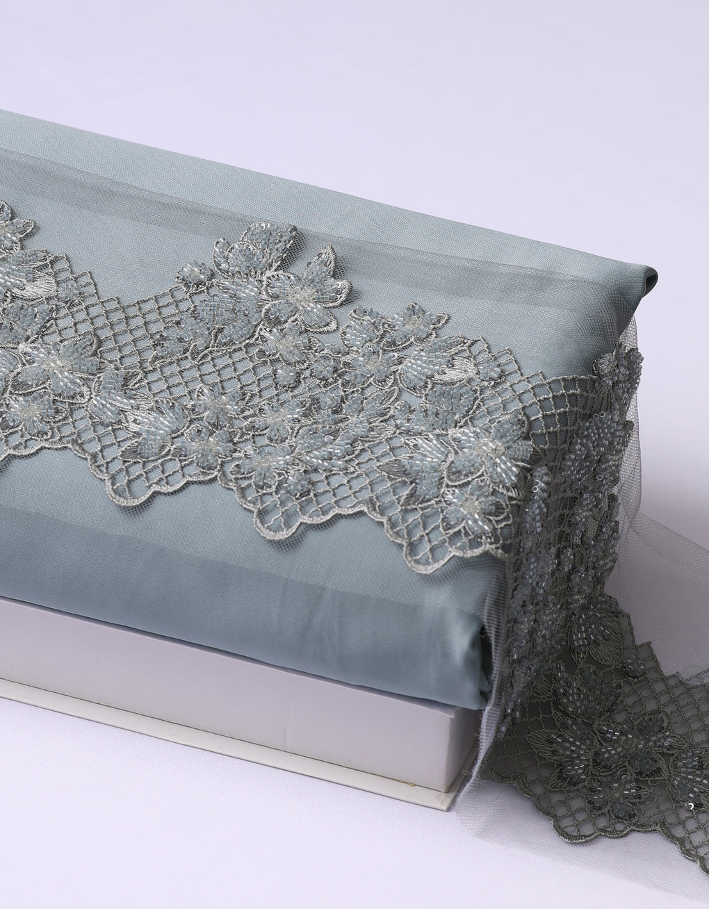 Beaded Border lace  is a fine fabrics that comes in floral and abstract pattern and also with minimalist sequins and beads. Giving the highest recognition for the exquisite vibe of femininity to the wearer. It also has a good drapability.