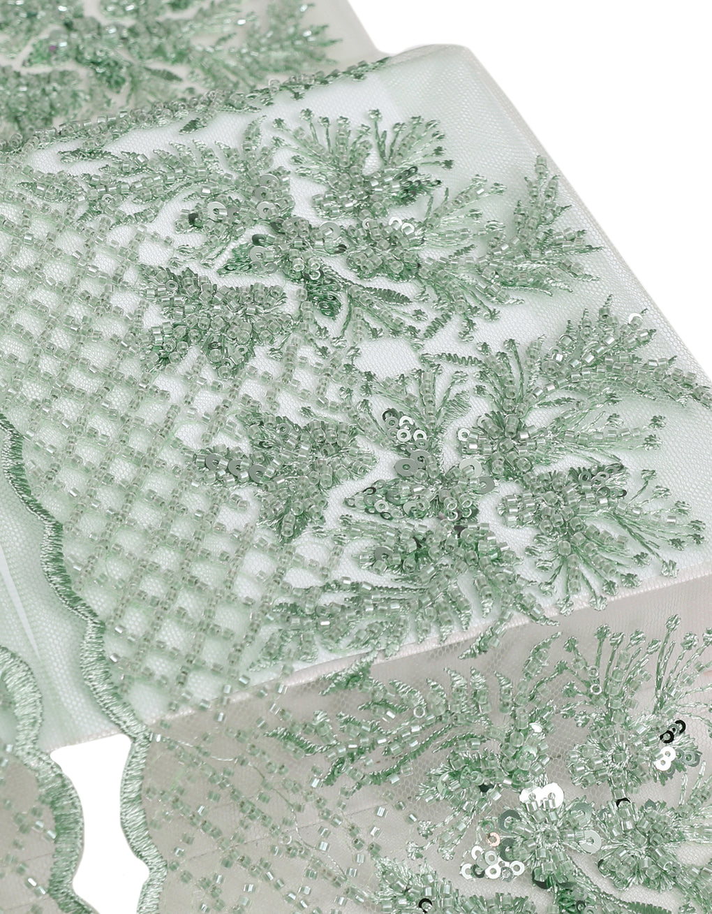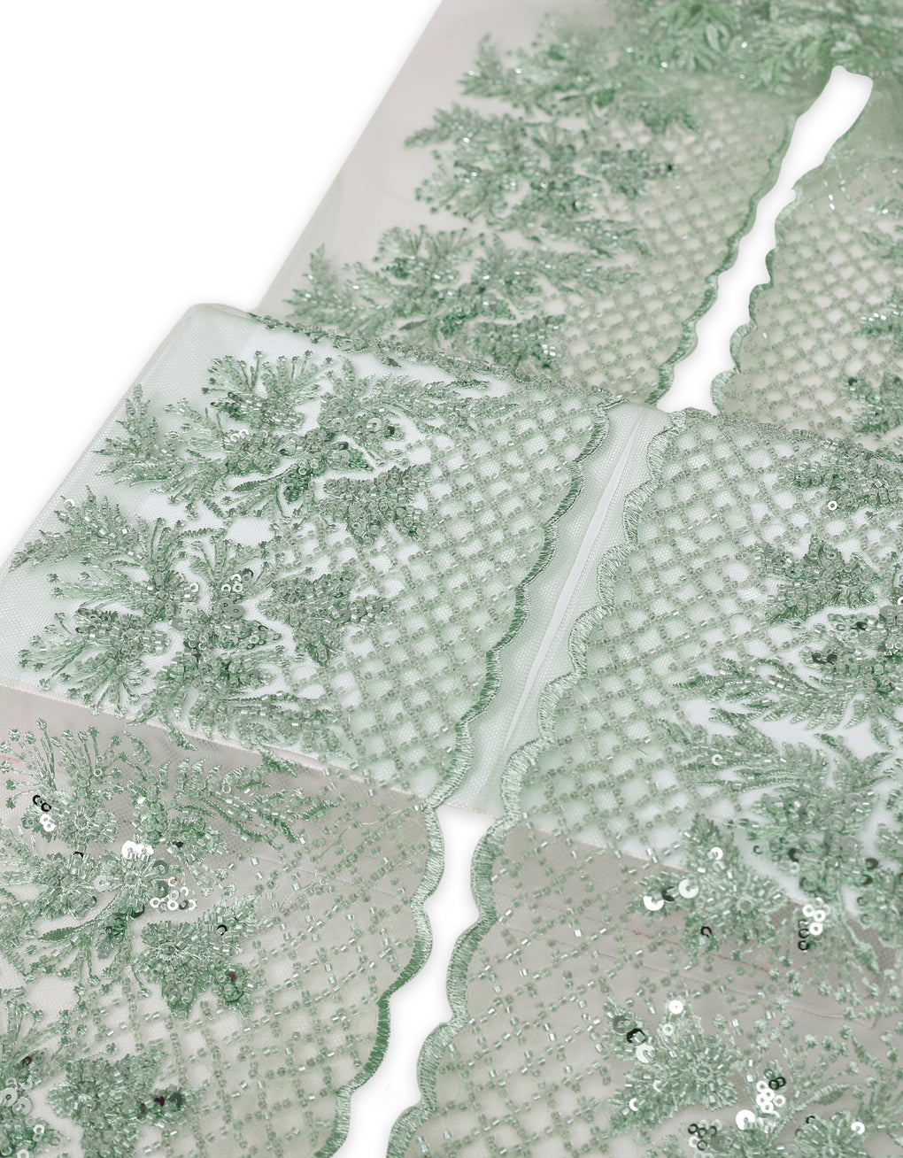 Aurora Blossom Beaded Border Lace - (Dusty Green)