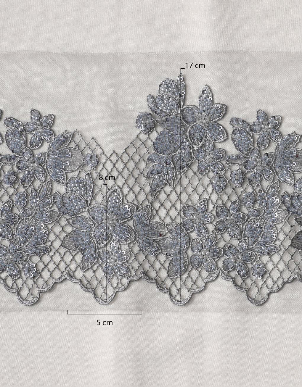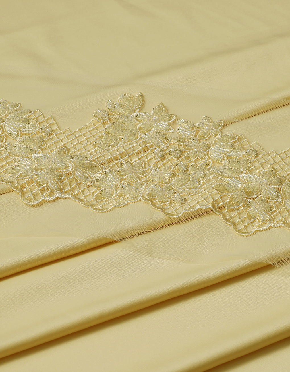 Beaded Border lace  is a fine fabrics that comes in floral and abstract pattern and also with minimalist sequins and beads. Giving the highest recognition for the exquisite vibe of femininity to the wearer. It also has a good drapability.