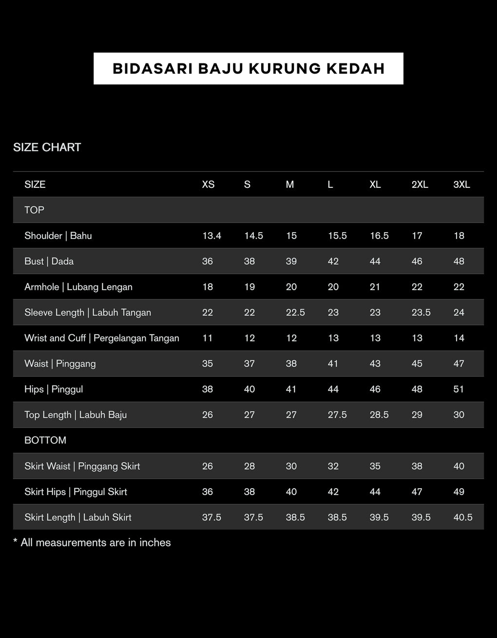 Skirt Length | Labuh Skirt 37.5 37.5 38.5 38.5 39.5 39.5 40.5