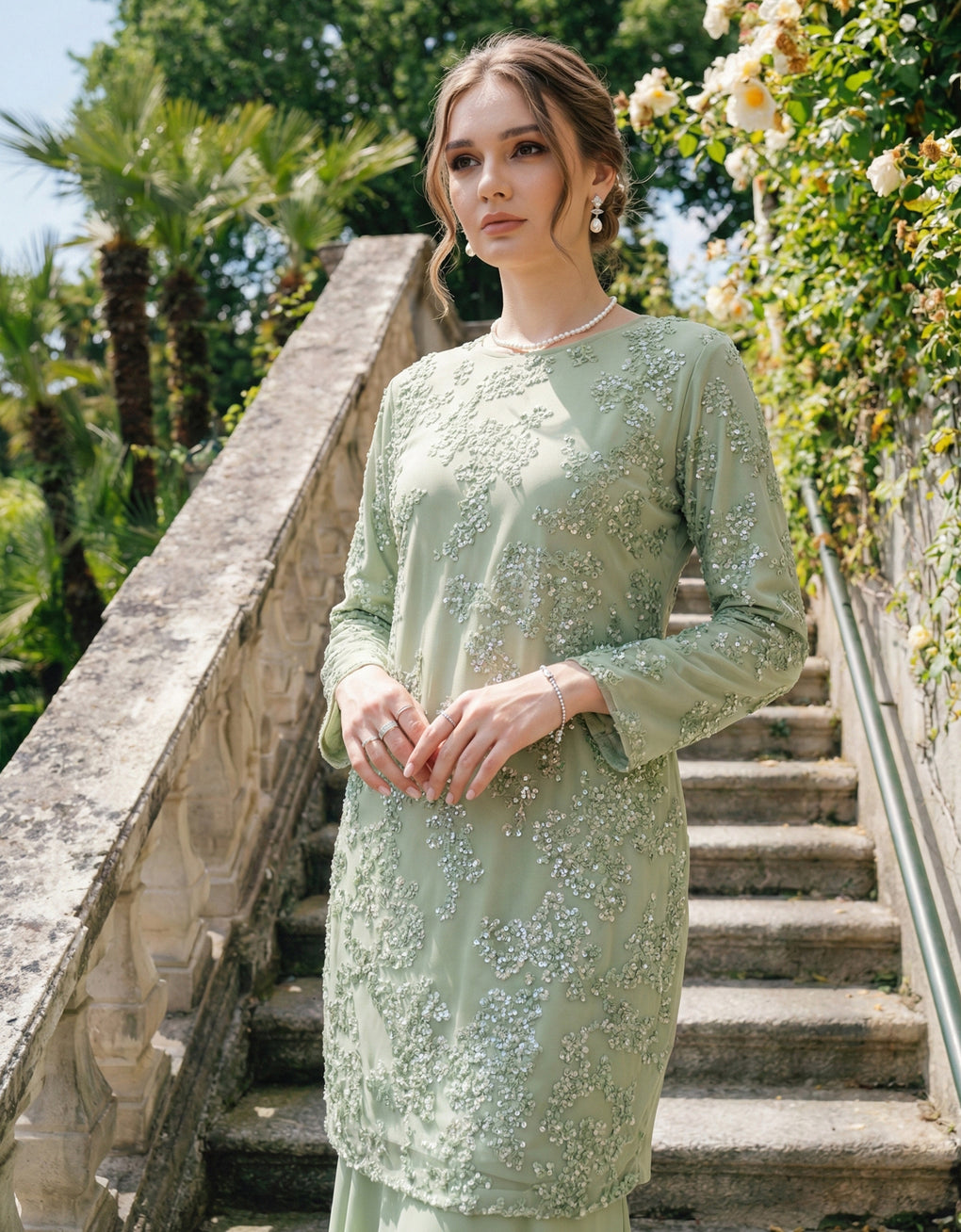 BAJU KURUNG MODEN RAYYANA (SAGE GREEN)