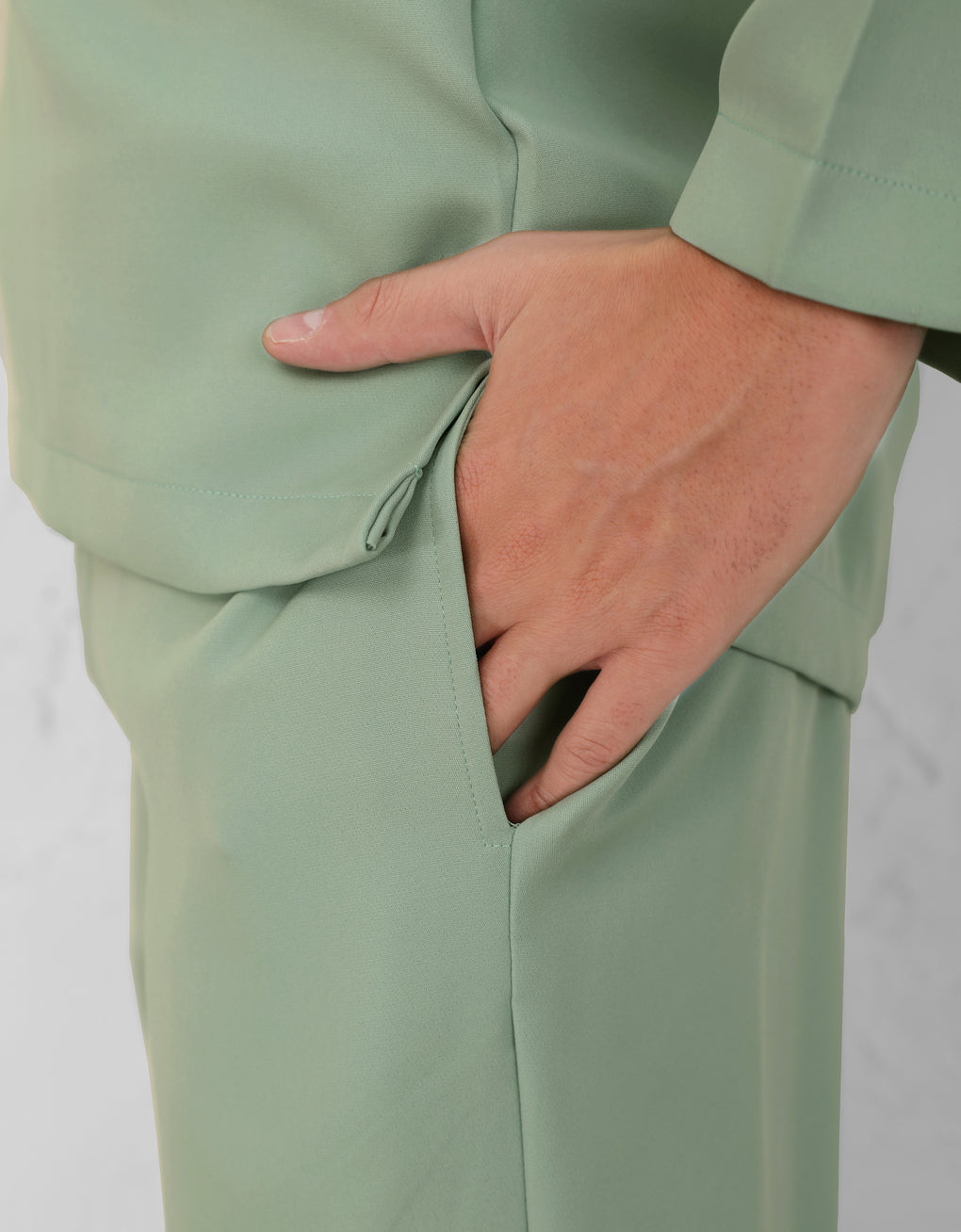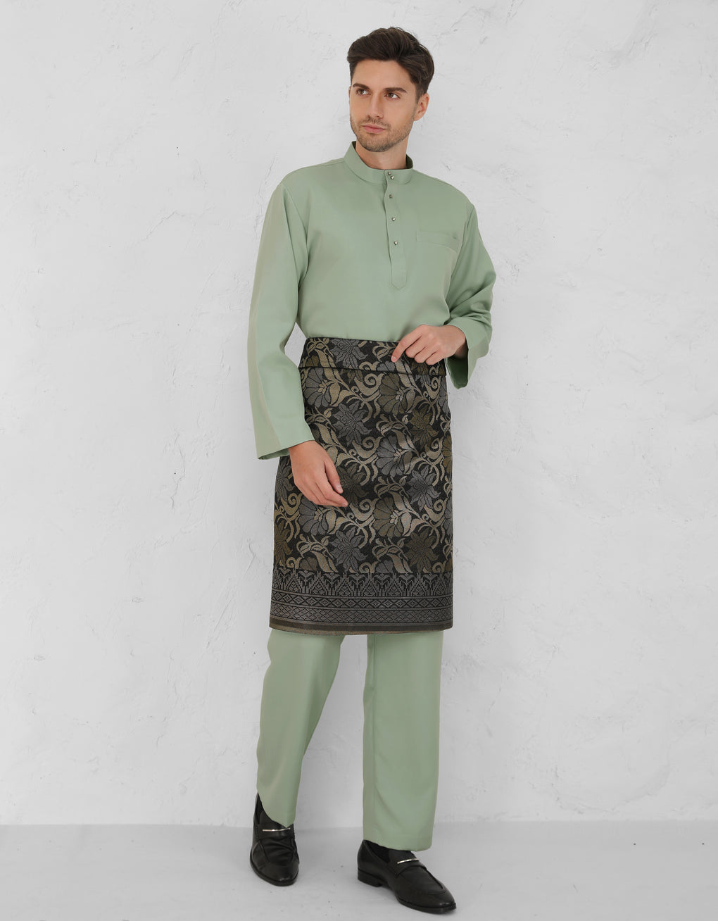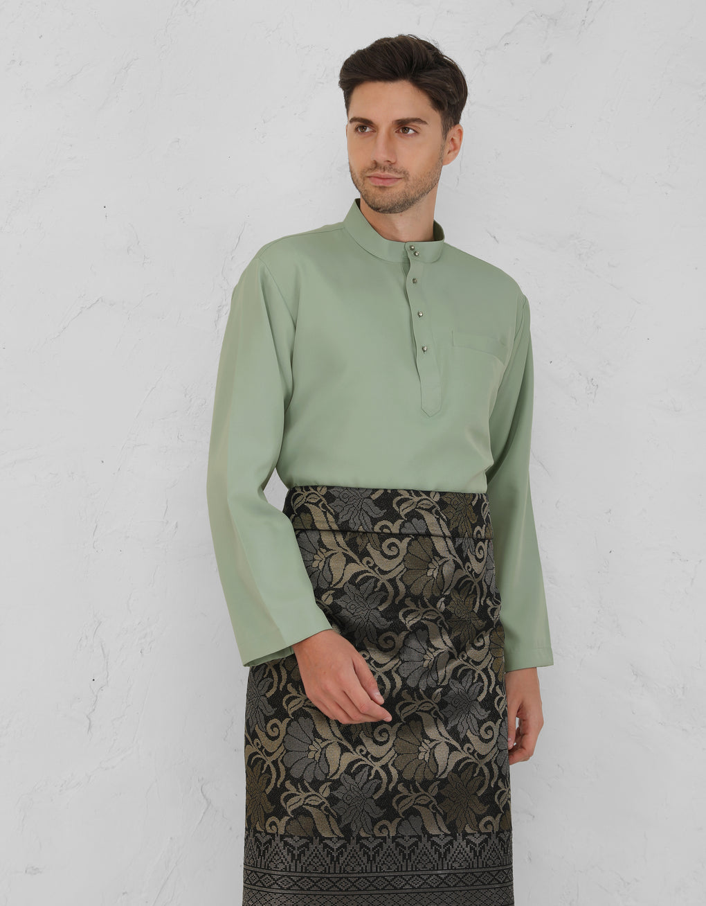 Crafted from italian crepe. A Modern take on the classic Baju Melayu Cekak Musang - clean lines, tailored fit, and refined details for a sleek traditional look. Perfect for Raya, Wedding or formal events. This timeless piece blends heritage with cotemporary style.
