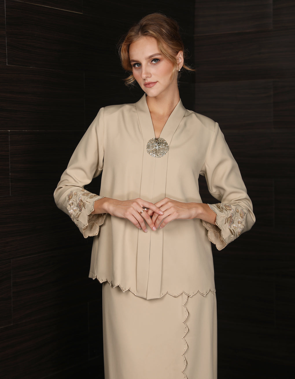 Crafted from premium Italian crepe and featuring intricate embroidery, this baju kebaya offers a form fitting silhouette with a slight stretch for comfort. Its soft touch to the skin makes it breathable and luxurious.