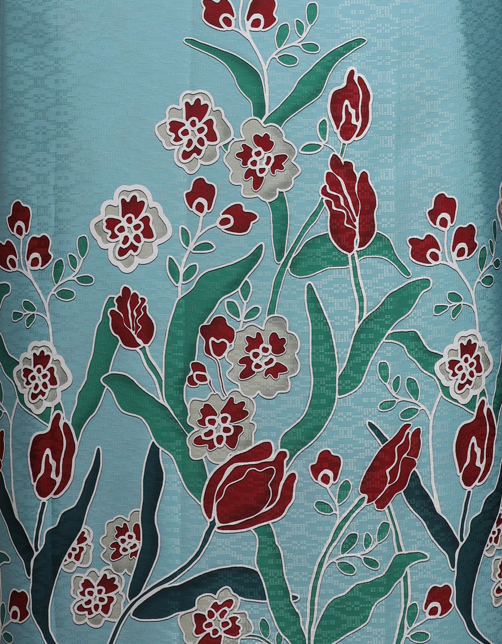 Exclusive fabric design, high quality of material which is not transparent, has a glossy surface and smooth to touch. This fabric create a shiny, soft right side of the fabric while the other is matte or dull. It is very comfortable and have beautiful drape.