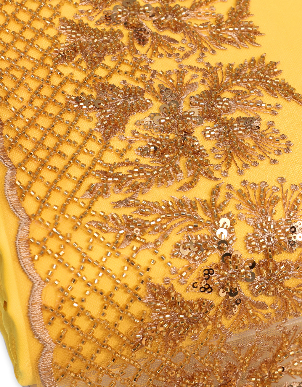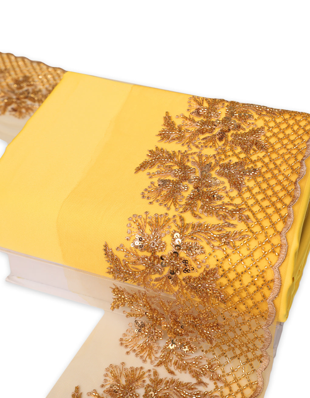 Aurora Blossom Beaded Border Lace Mix and Match - (Gold) + Satin (Yellow)