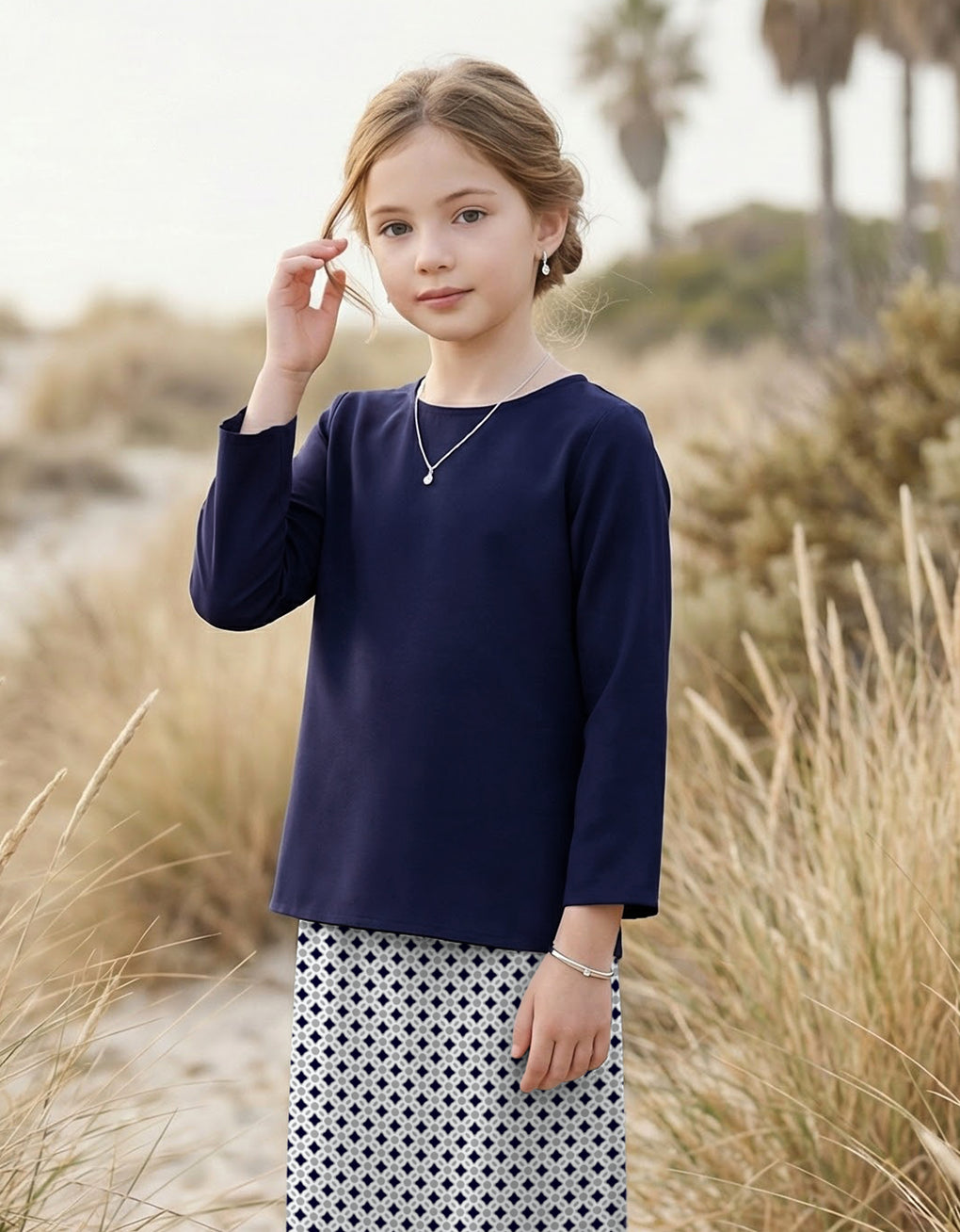 KIDS BAJU KURUNG KEDAH AYDA (NAVY BLUE)