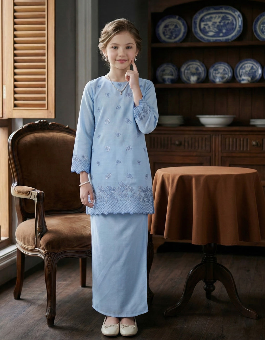 KIDS BAJU KURUNG PAHANG MODEN LETTIE (BABY BLUE)