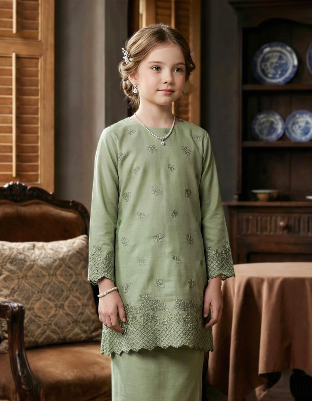 KIDS BAJU KURUNG PAHANG MODEN LETTIE (TENDRIL GREEN)