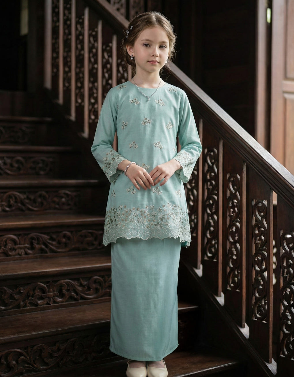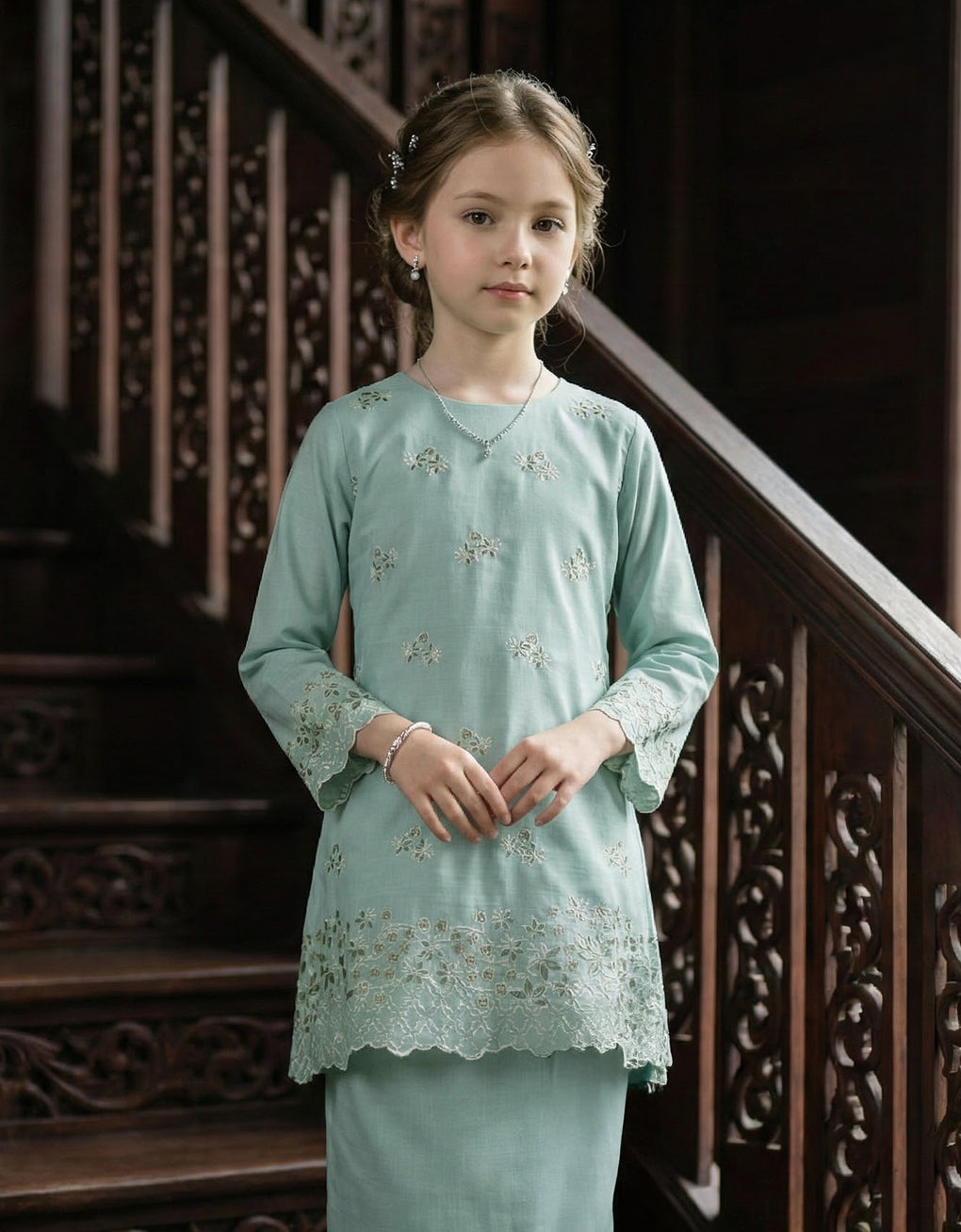 KIDS BAJU KURUNG PAHANG MODEN KAELIN (MINT GREEN)