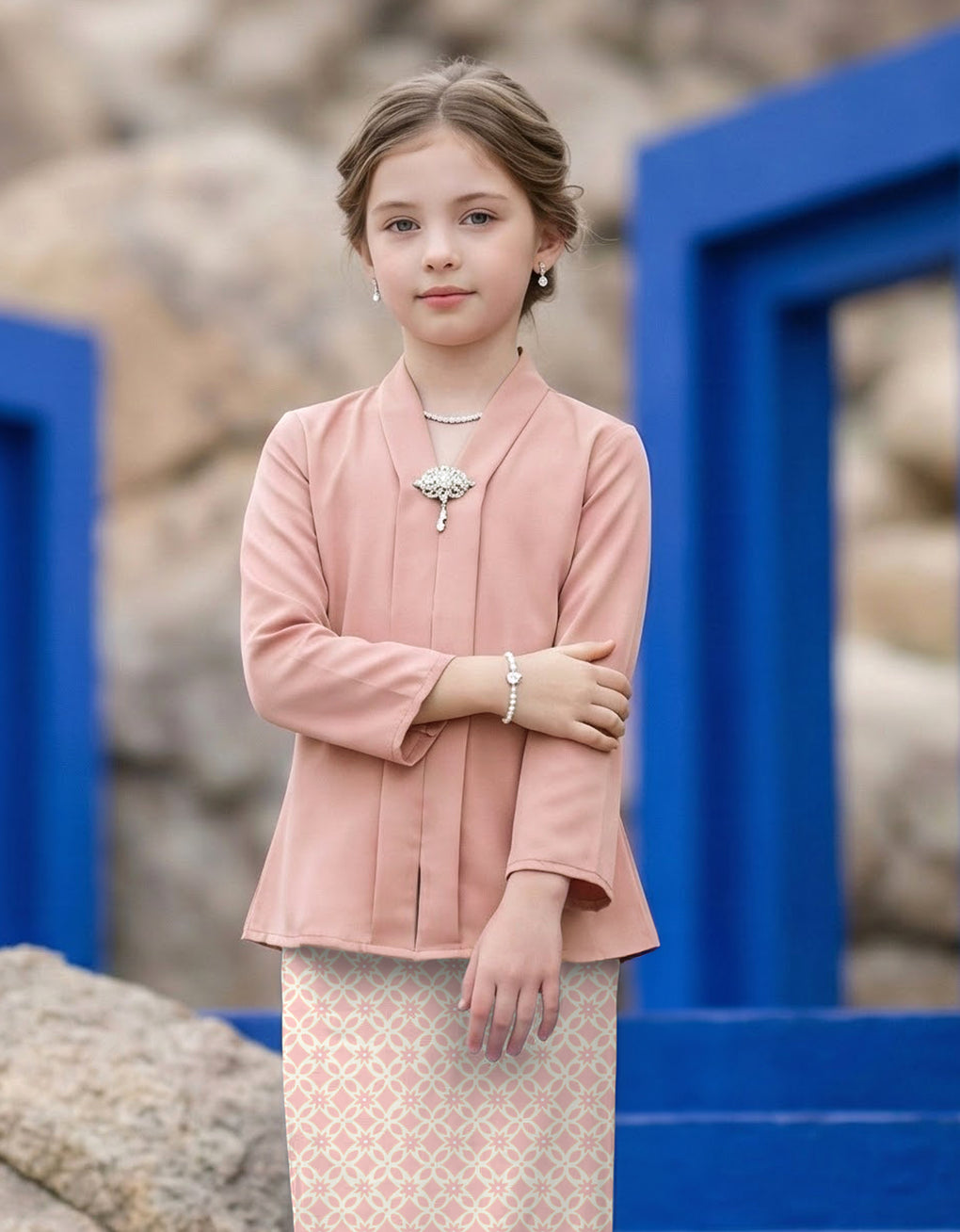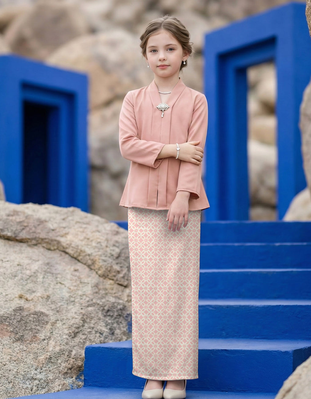 Introduce your daughter to timeless elegance with the Kids Baju Kebaya Melyra features a coordinated plain satin top paired with a beautifully printed satin skirt, designed for the modern family. The soft sage green hue complements all skin tones, while the premium satin fabric drapes gracefully for a polished appearance. Perfect for festive occasions, family portraits, or special celebrations, this mother-daughter ensemble creates a cohesive, sophisticated look. The quality construction ensures comfort throughout the day, making it an investment piece for memorable moments together.Size Guide: The model wears a size 8 and is 120 cm tall