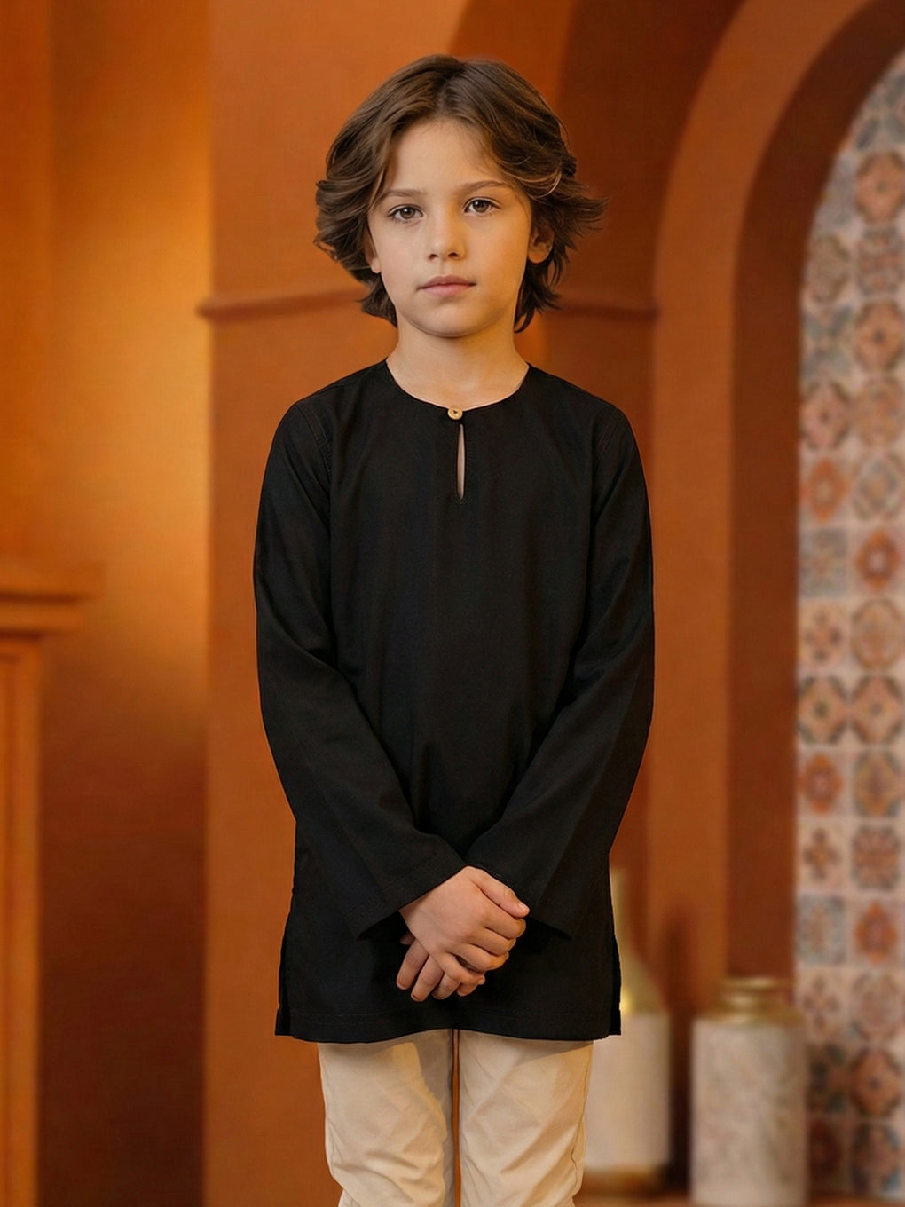 KIDS KURTA JEBAT (BLACK)