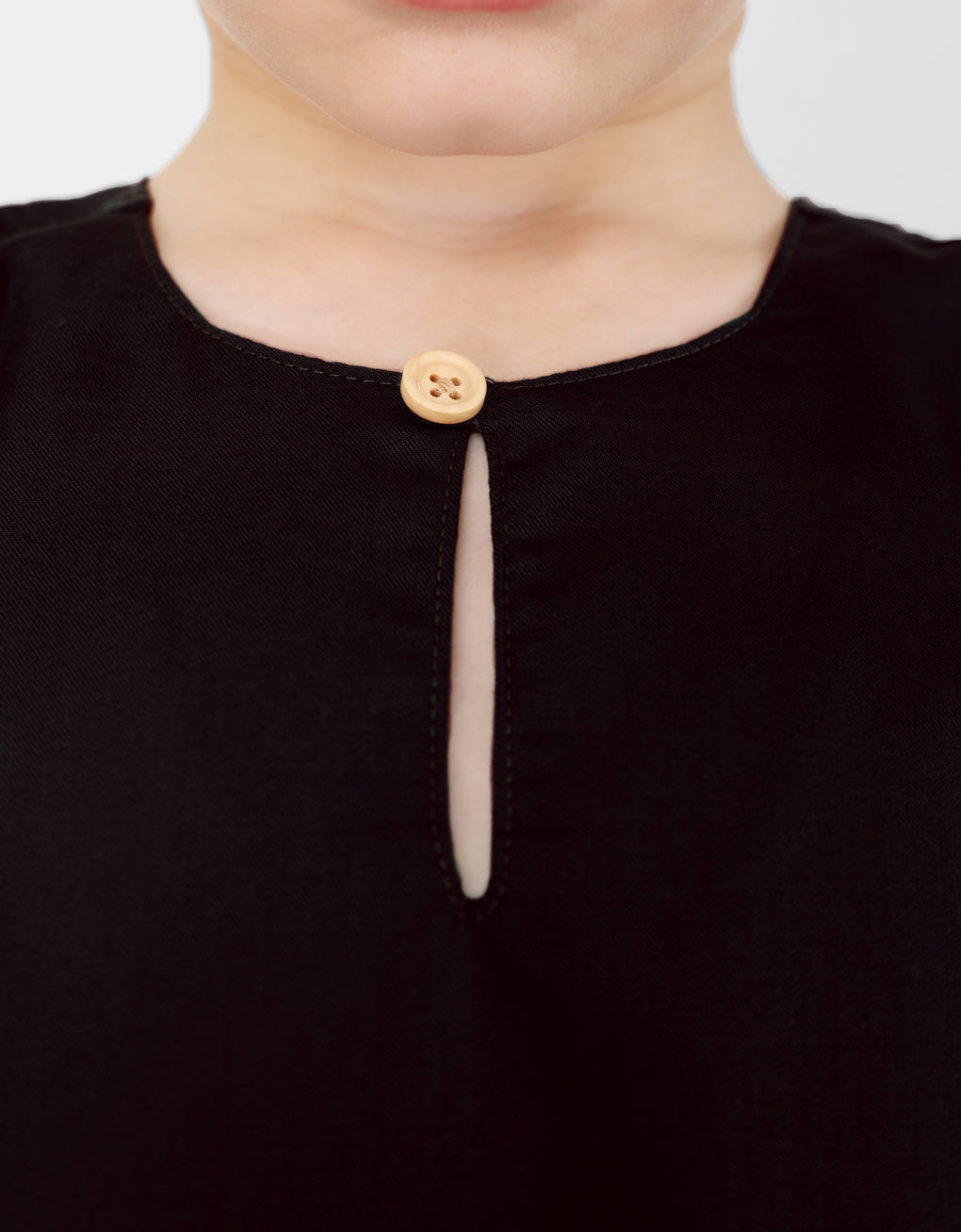 ✿ Round neck with key-hole and button design