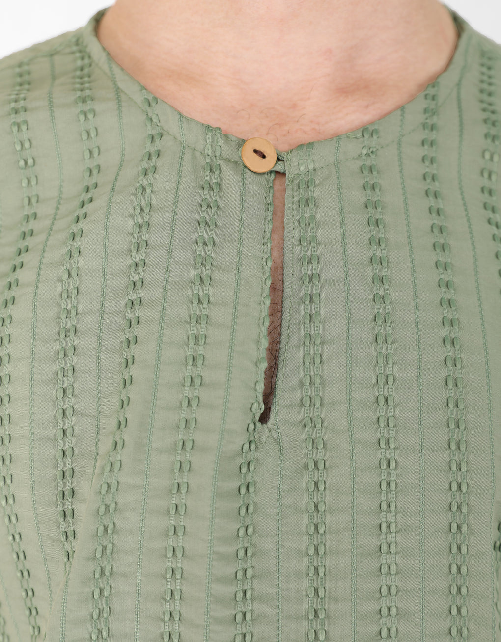 ✿ Round neck with key-hole and button design