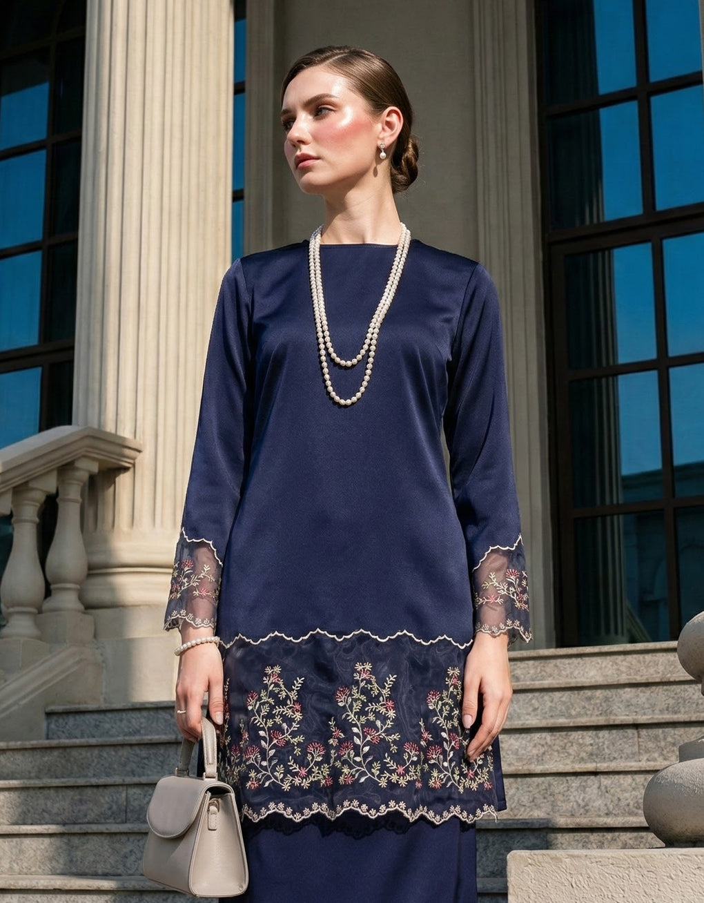 BAJU KURUNG PAHANG MODEN MORANA (NAVY BLUE)