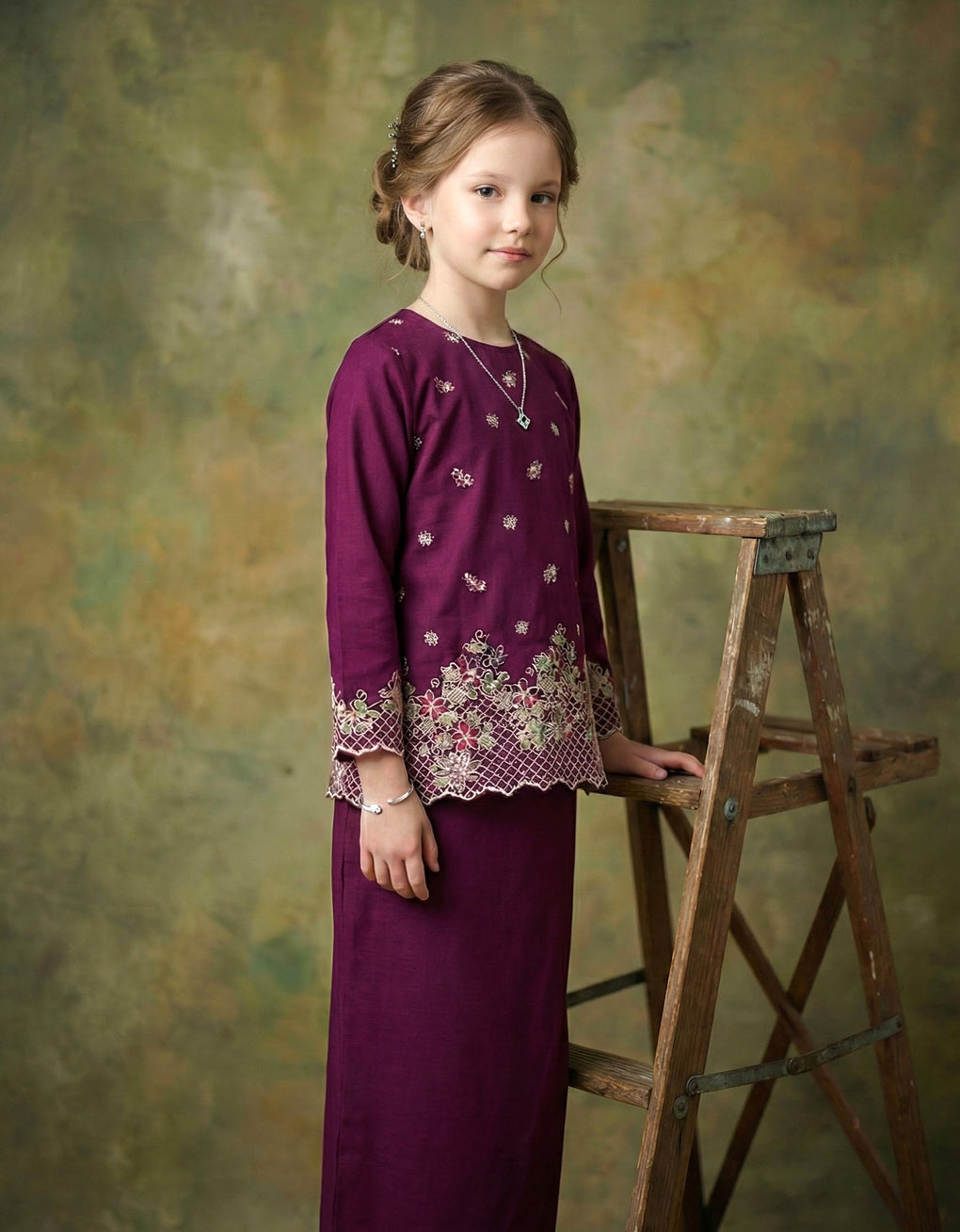 "Kids Baju Kurung Kedah Moden Aveline" blends tradition with a modern touch. Made from premium linen cotton with beautiful multicolor embroidery, it offers comfort and elegance in a long, graceful cut. Perfect for formal events or stylish everyday wear, it’s a timeless piece for those who appreciate both heritage and contemporary style.