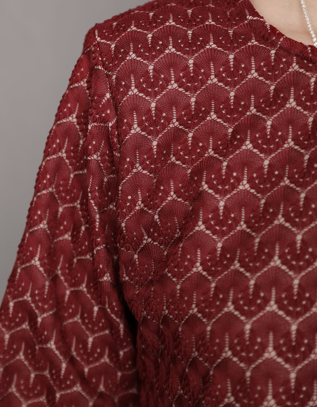 Material: Bonded Lace – Featuring a luxurious geometric lace pattern, delicately sewn for a flattering and structured fit. This well-crafted piece enhances your silhouette without feeling stiff, and requires no interlining.