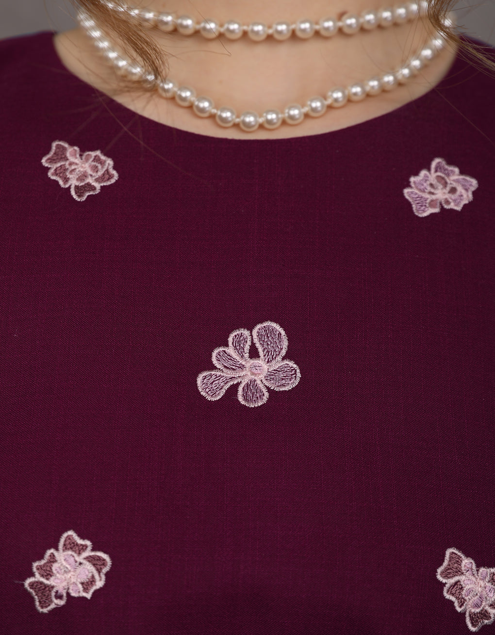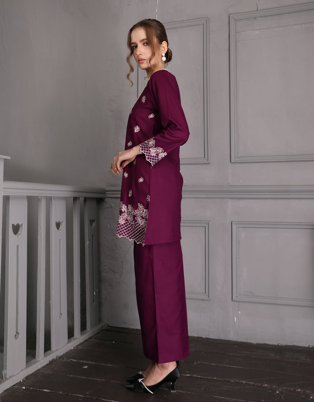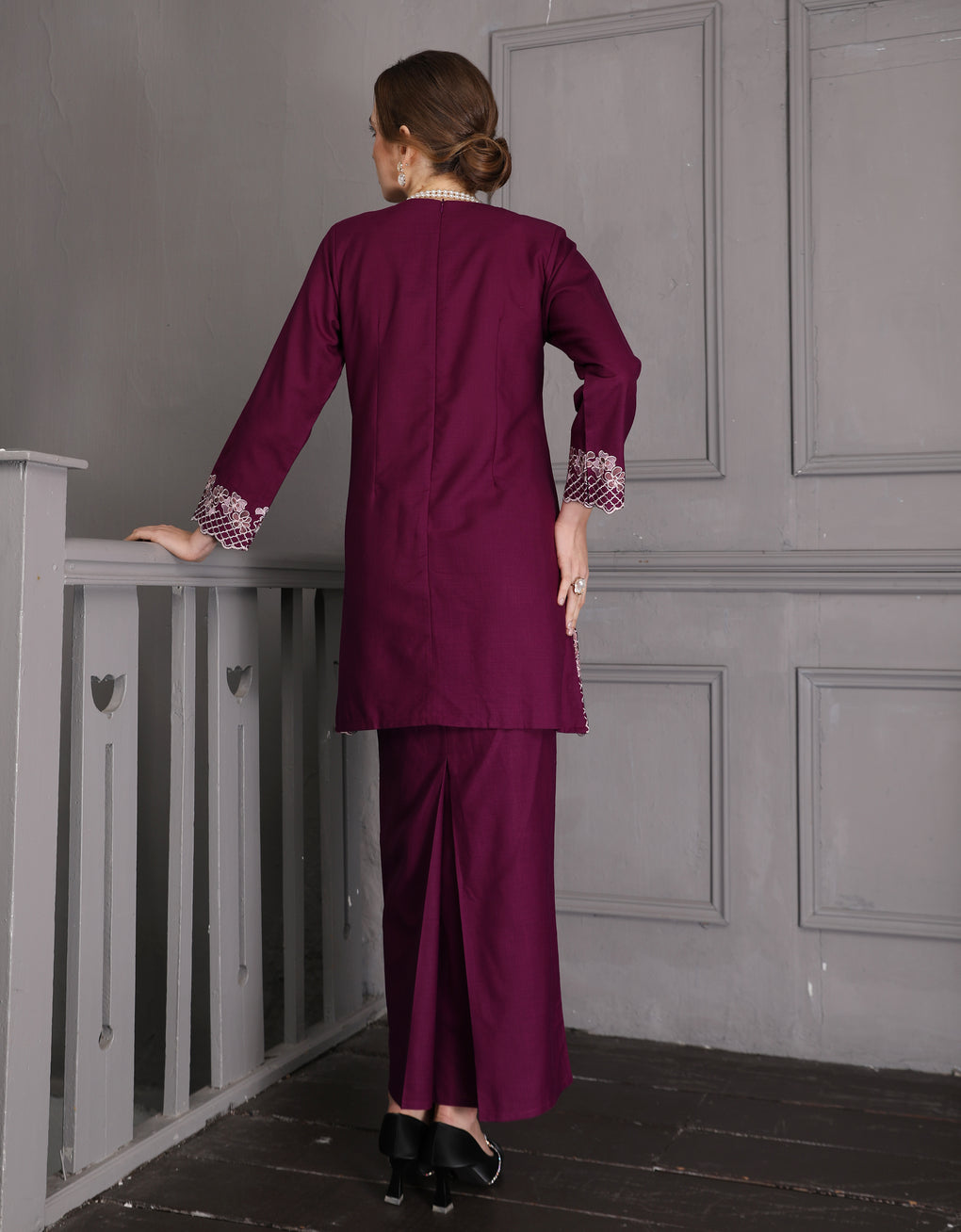BAJU KURUNG PAHANG MODEN LETTIE (BURGUNDY)