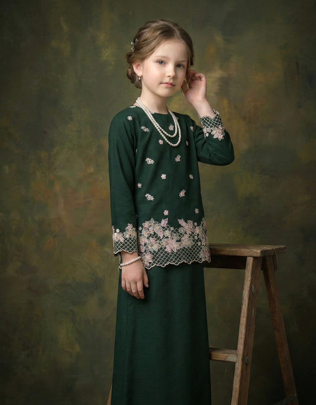 KIDS BAJU KURUNG KEDAH AVELINE (EMERALD GREEN)