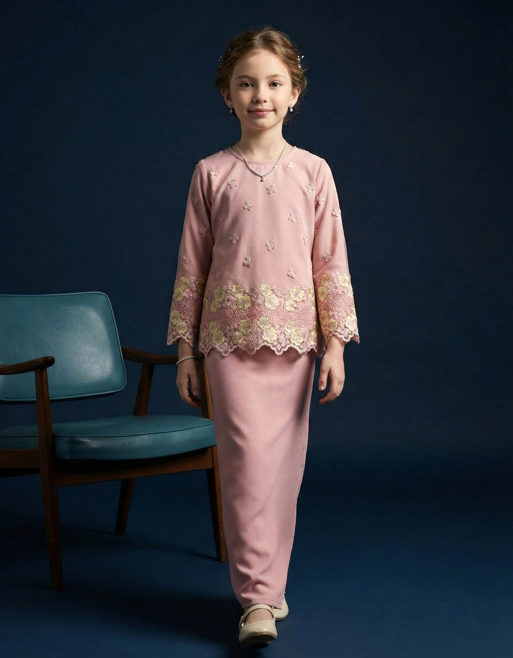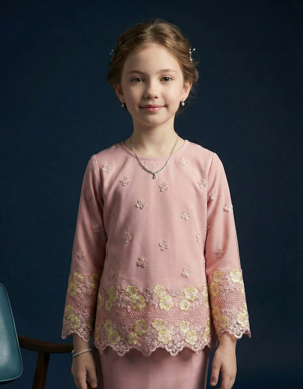 KIDS BAJU KURUNG KEDAH HAIFA (DUSTY PINK)