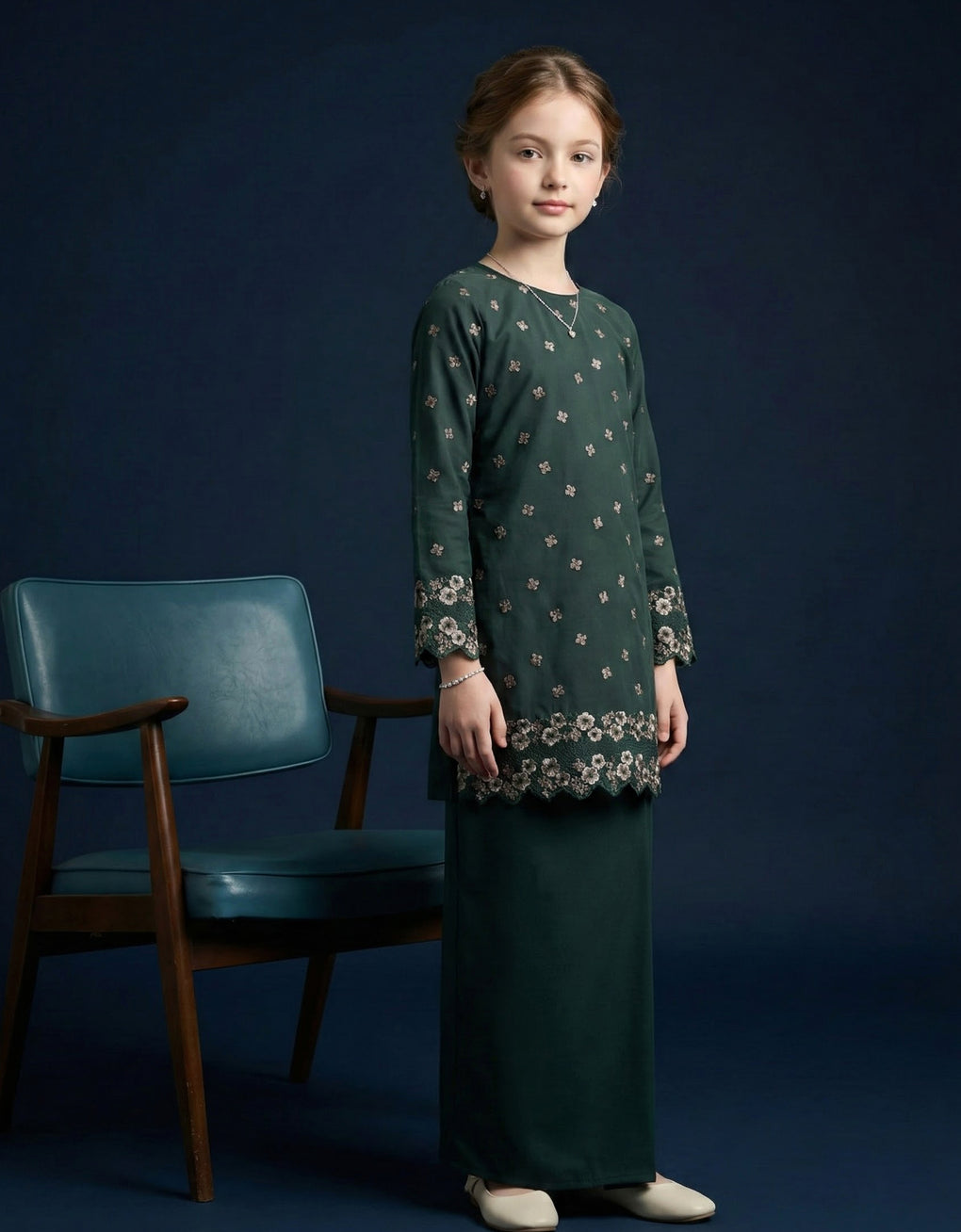 KIDS BAJU KURUNG KEDAH HAIFA (EMERALD GREEN)