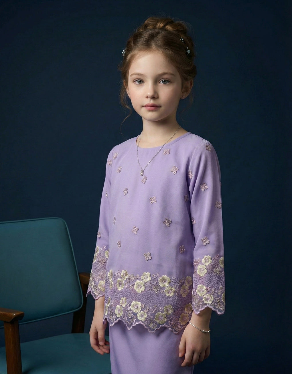 KIDS BAJU KURUNG KEDAH HAIFA (LILAC)