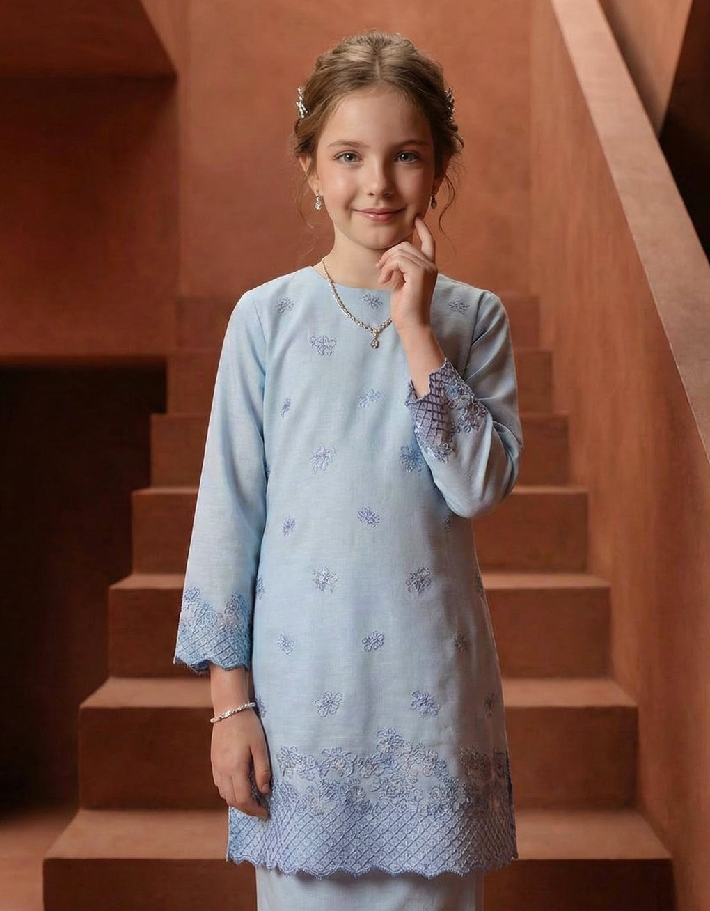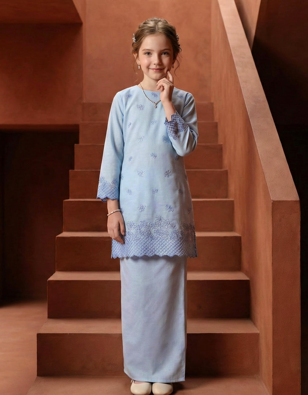 KIDS BAJU KURUNG PAHANG MODEN LETTIE (BABY BLUE)