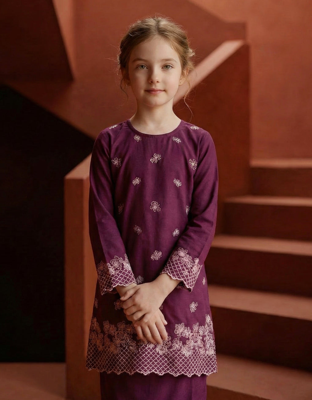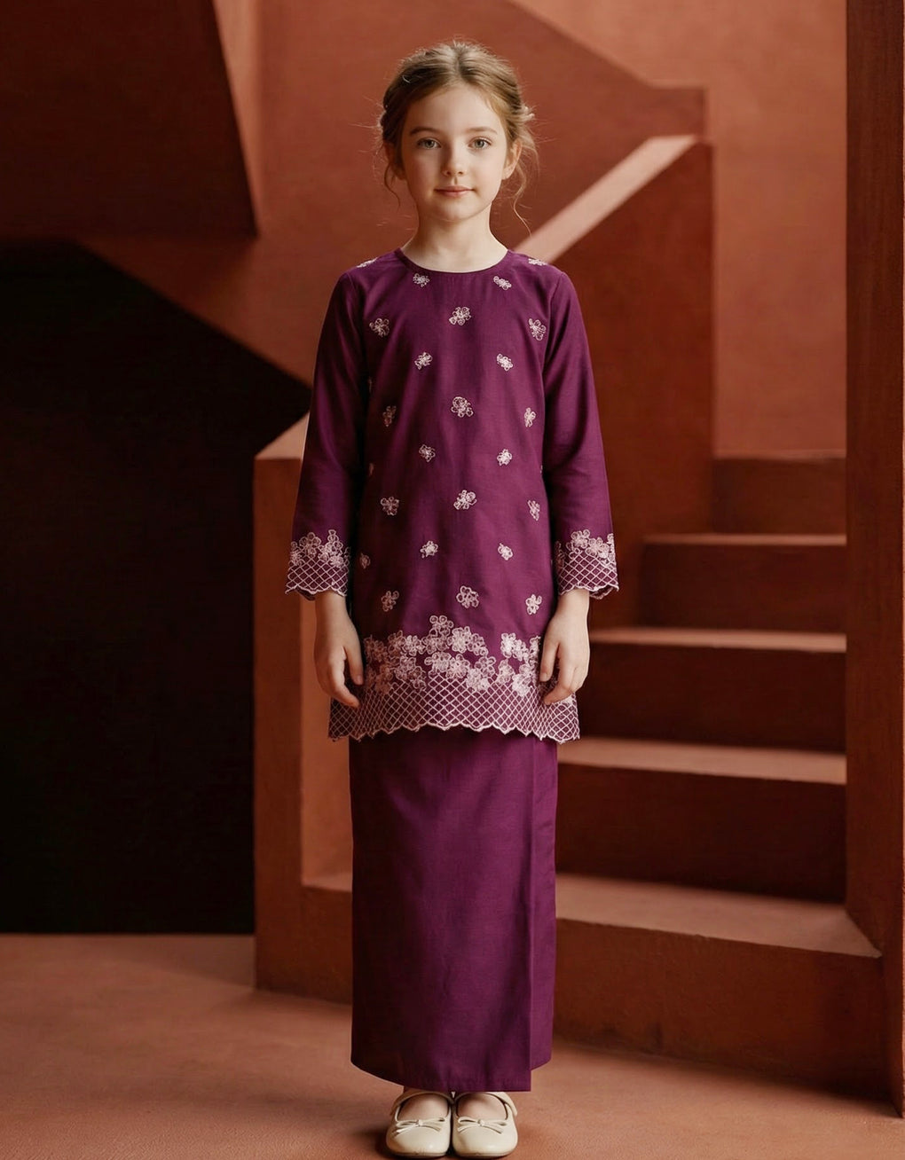 "Kids Baju Kurung Pahang Moden Lettie" blends tradition with a modern touch. Made from premium linen cotton with beautiful multicolor embroidery, it offers comfort and elegance in a long, graceful cut. Perfect for formal events or stylish everyday wear, it’s a timeless piece for those who appreciate both heritage and contemporary style.
