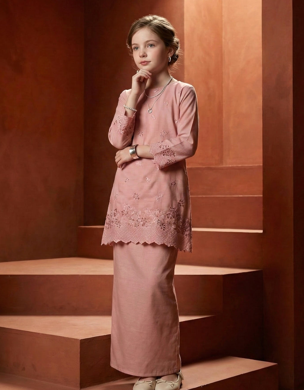 KIDS BAJU KURUNG PAHANG MODEN LETTIE (DUSTY PINK)
