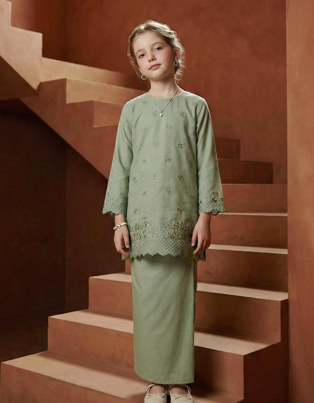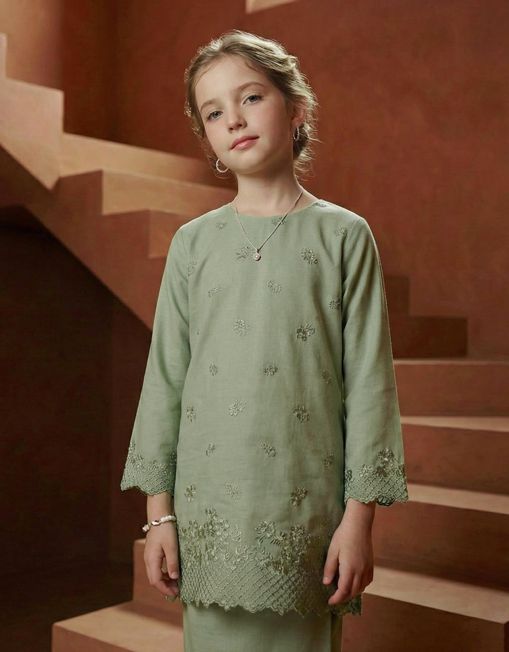 KIDS BAJU KURUNG PAHANG MODEN LETTIE (TENDRIL GREEN)
