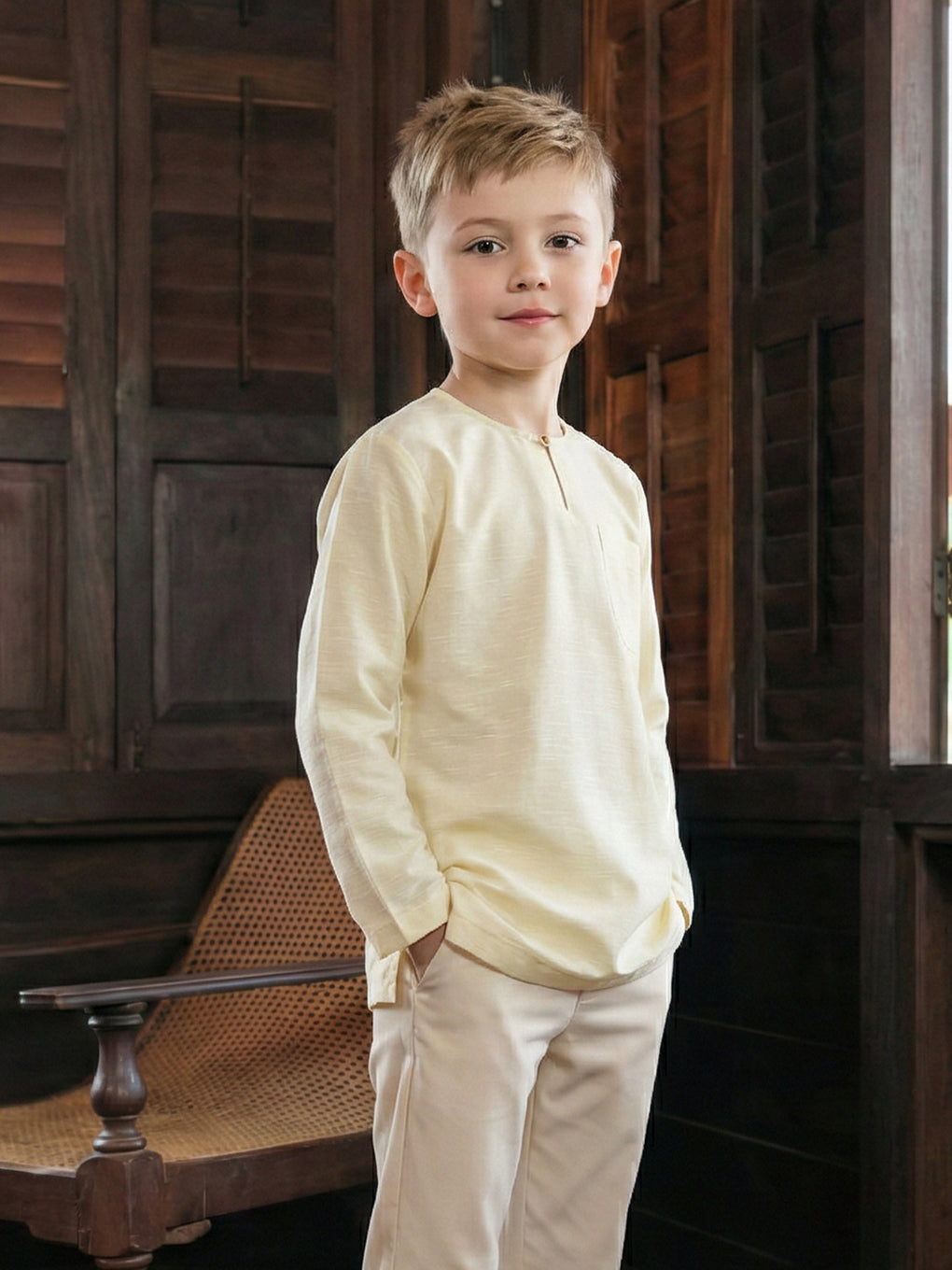Material: Poly Cotton Linen - textured cotton linen fabric that feels soft and comfortable against the skin. The traditional Teluk Belanga design gives a classic look that are perfect for daily or special occasion.