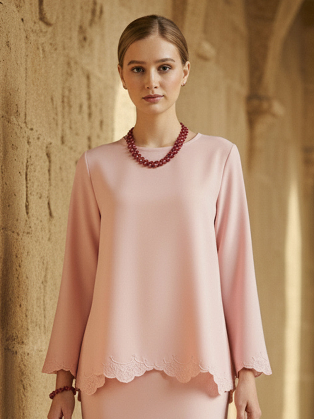 Elevate your wardrobe with the Baju Kurung Kedah Elayne. Crafted from double georgette crepe, this baju kurung features intricate embroidery for an elegant touch. Perfect for special occasions or formal events.