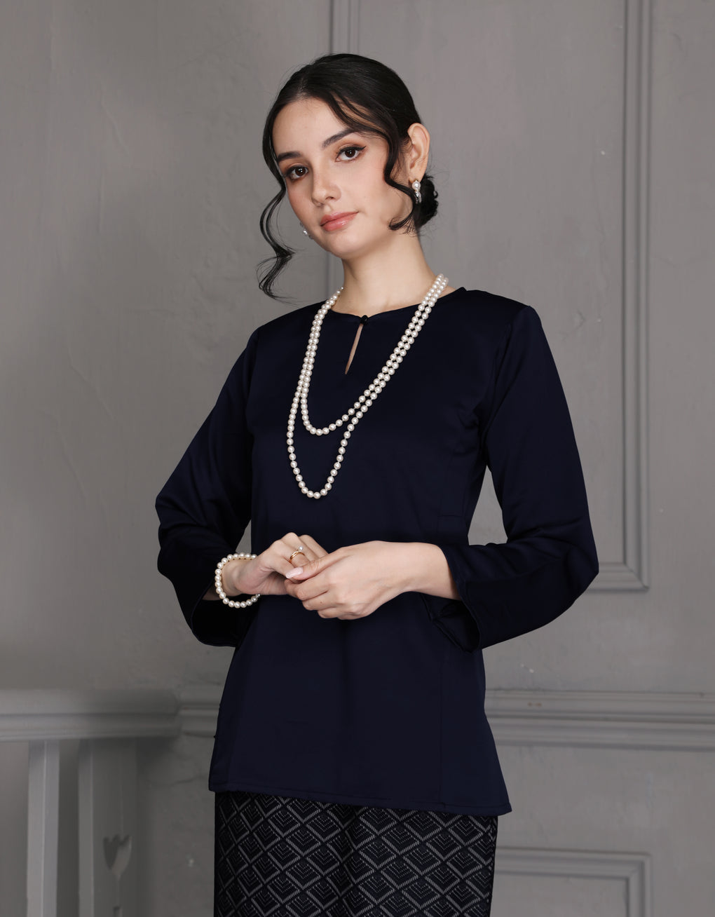 BAJU KURUNG KEDAH PESAK AFIRA (NAVY BLUE)