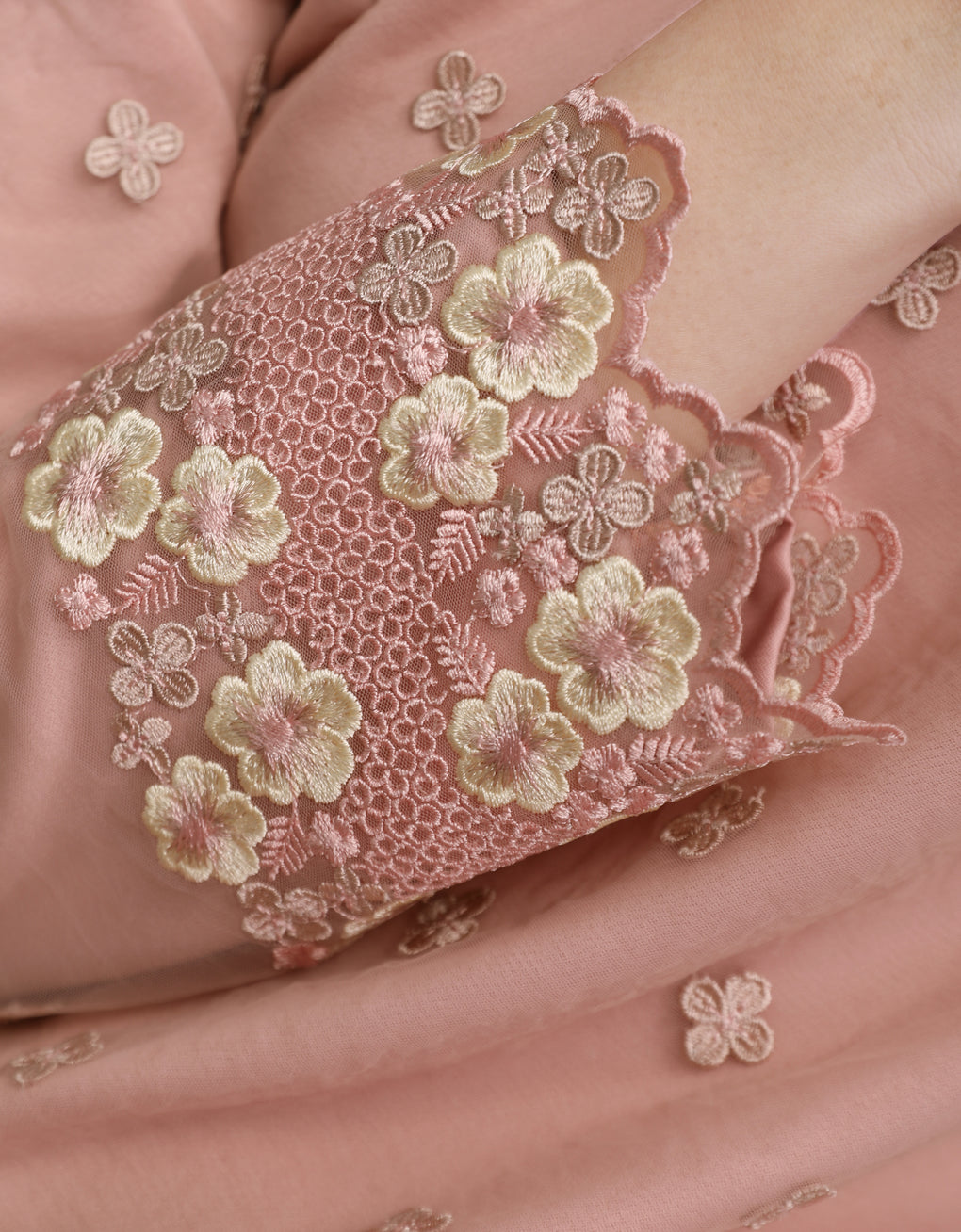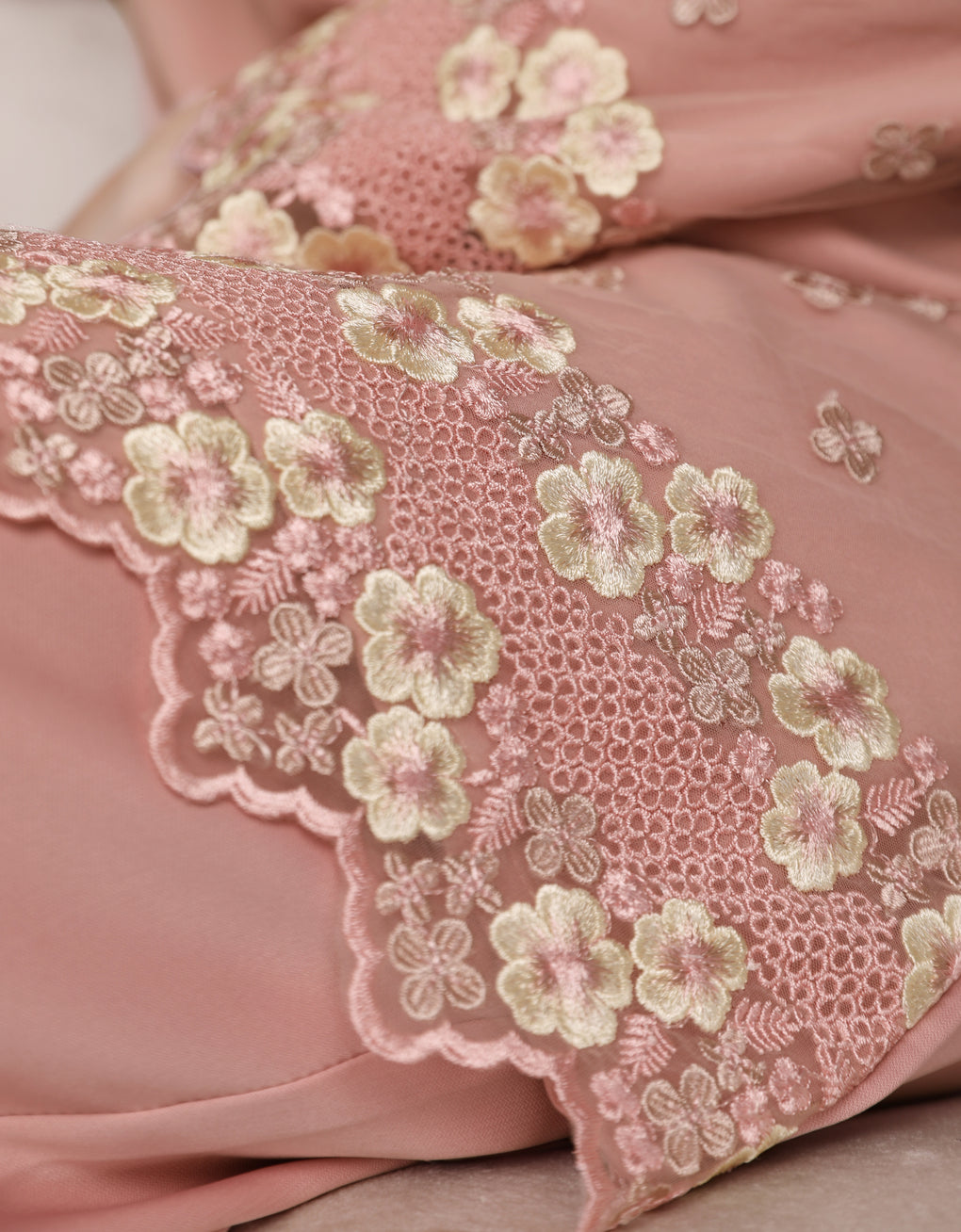 Crafted in a timeless Moden cut, this piece offers a comfortable fit. Delicate floral embroidered lace and a subtly geometric hem create a graceful blend of femininity and elegance perfect for any occasion.