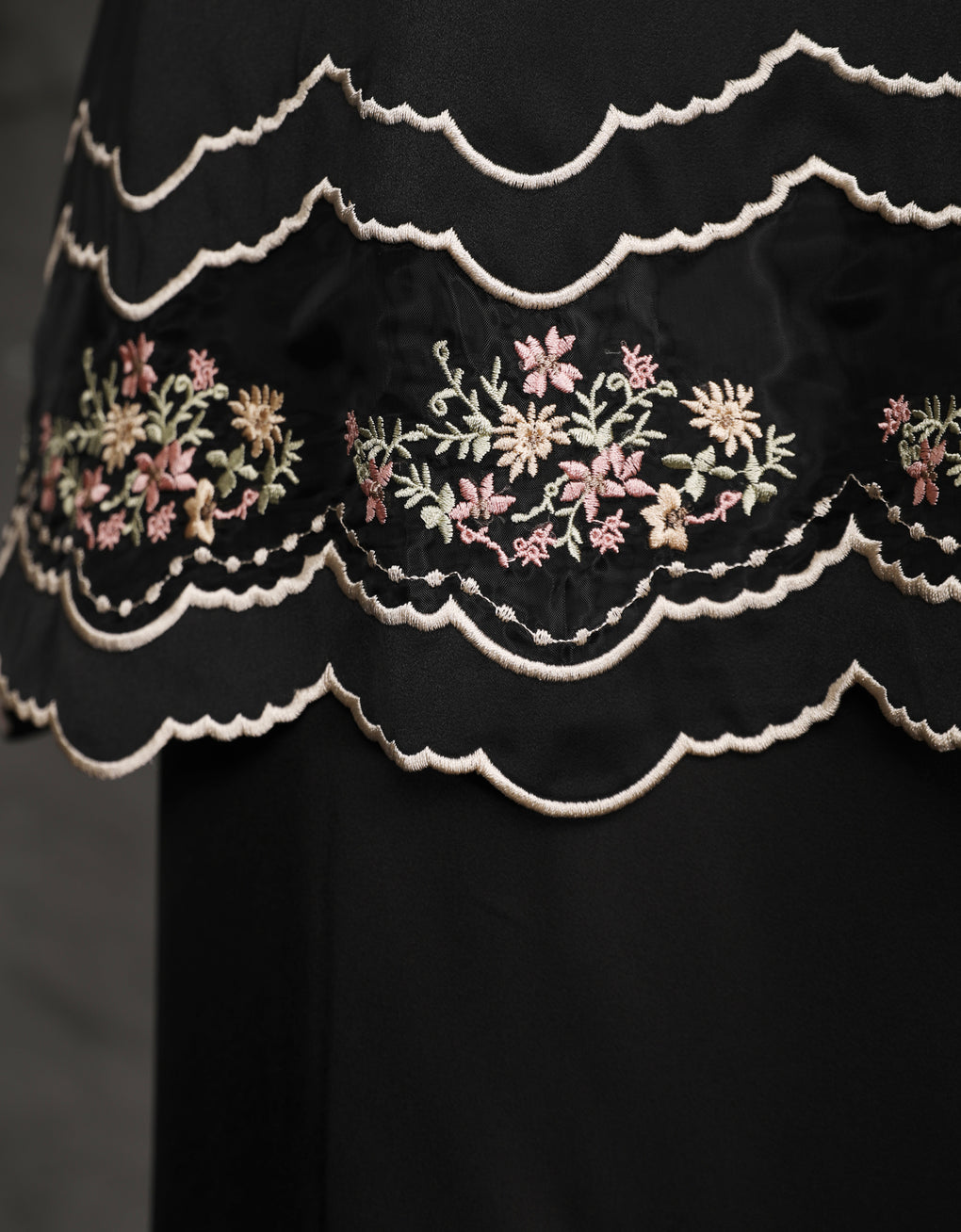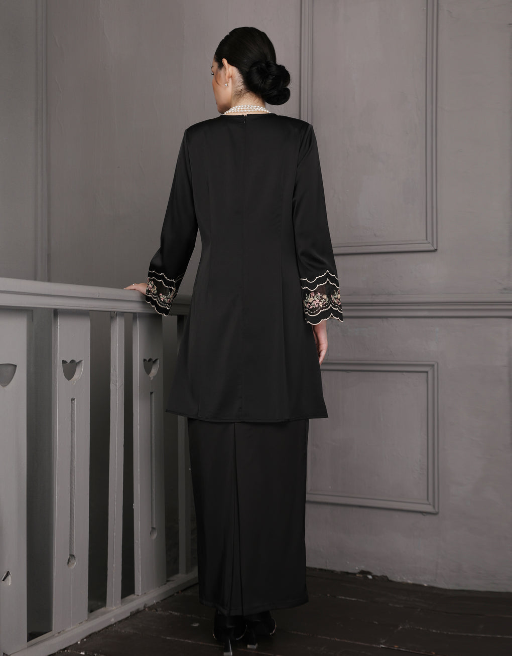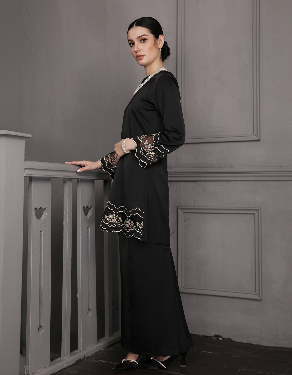 'Baju Kurung Pahang Moden Everlee' blends tradition with a modern touch. Crafted from luxurious Italian Silky Satin and adorned with multi-color embroidery, it offers both elegance and comfort in a long, flattering silhouette. A timeless choice for formal events or refined everyday wear.