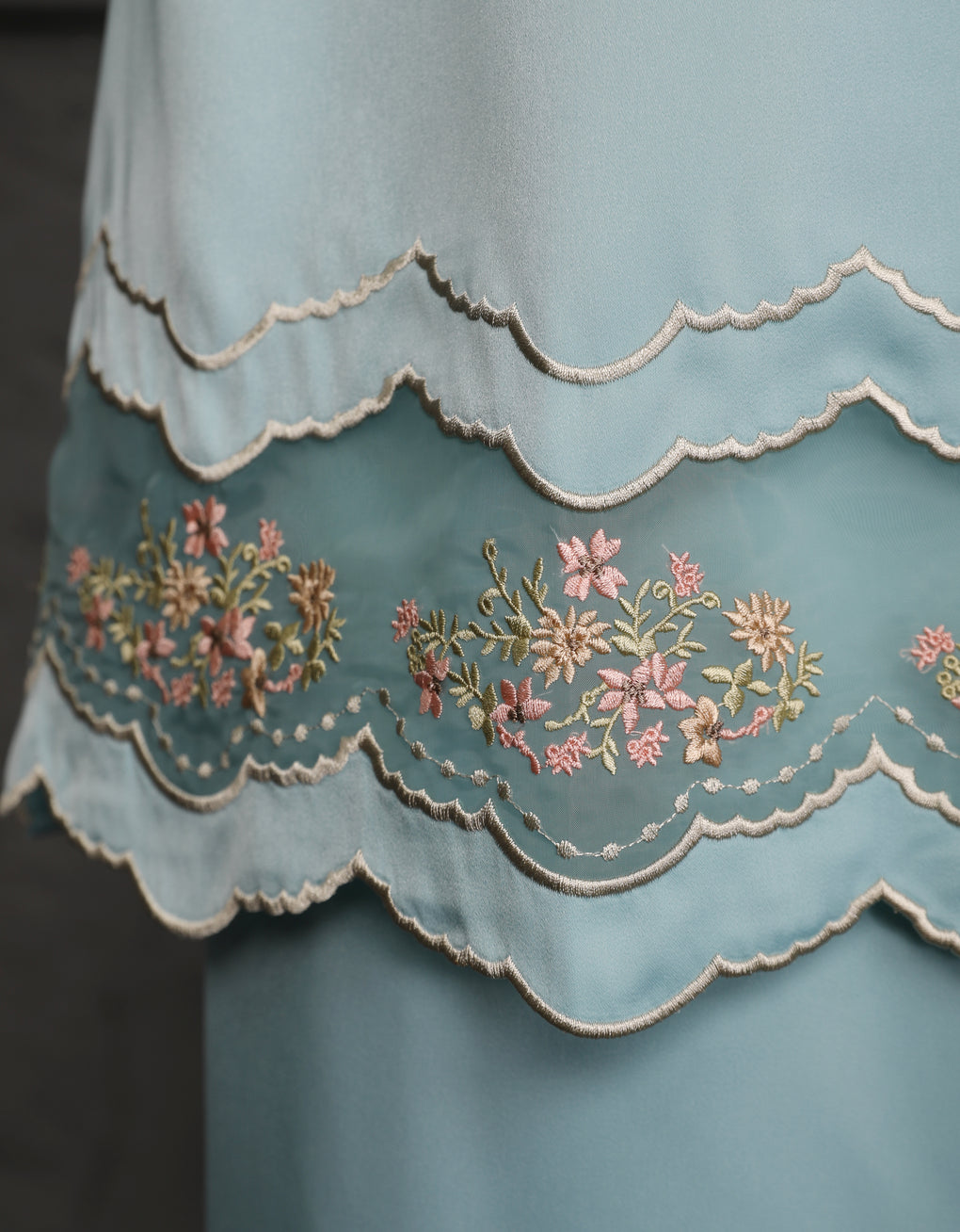 'Baju Kurung Pahang Moden Everlee' blends tradition with a modern touch. Crafted from luxurious Italian Silky Satin and adorned with multi-color embroidery, it offers both elegance and comfort in a long, flattering silhouette. A timeless choice for formal events or refined everyday wear.