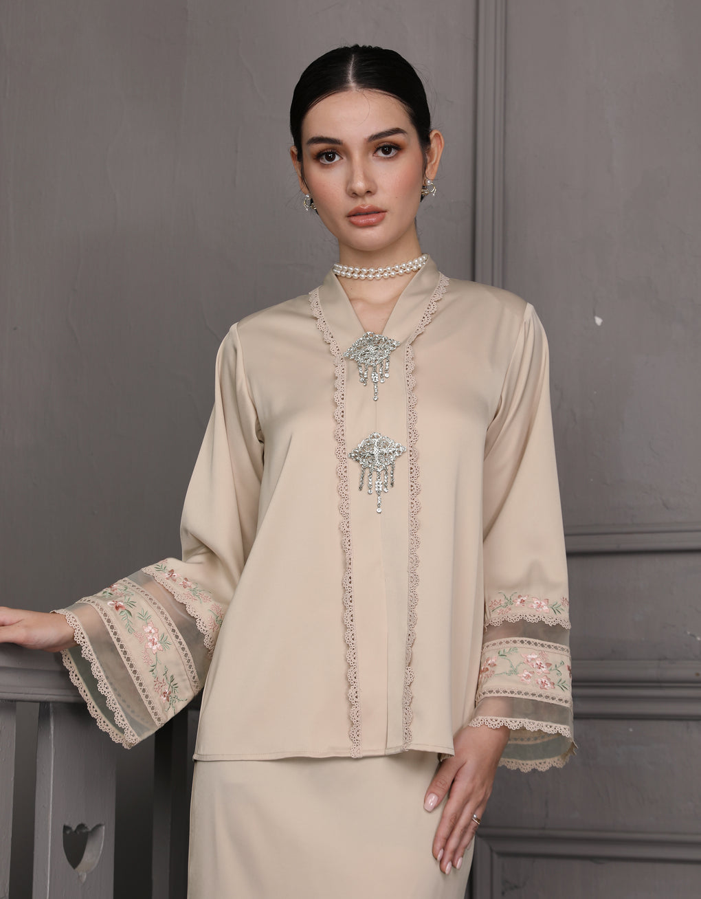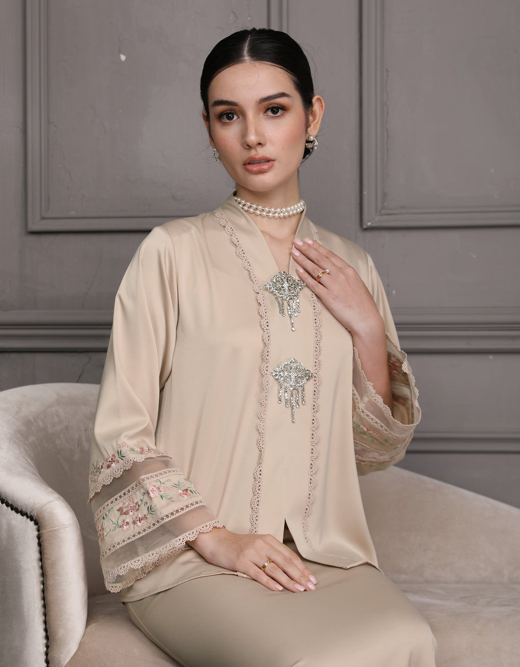 Embrace the elegance of 'Baju Kebaya Moden Jasmine', where timeless tradition meets modern flair. Made from luxurious fabric and detailed with delicate organdy embroidery on the sleeves, this piece is perfect for festive and formal occasions—bringing refined grace to any look.